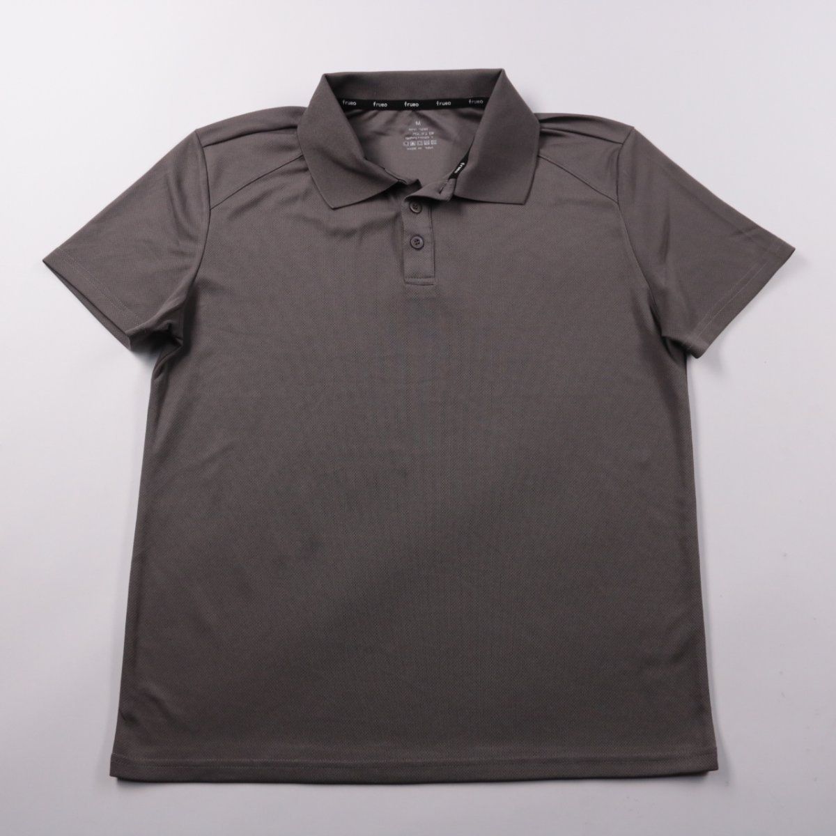 Мужское поло Trueo серого цвета с коротким рукавом и застёжкой на пуговицы. Подойдёт для повседневной носки, офиса без строгого дресс-кода или прогулок в тёплую погоду. Лёгкий полиэстер практичен в уходе и быстро сохнет.