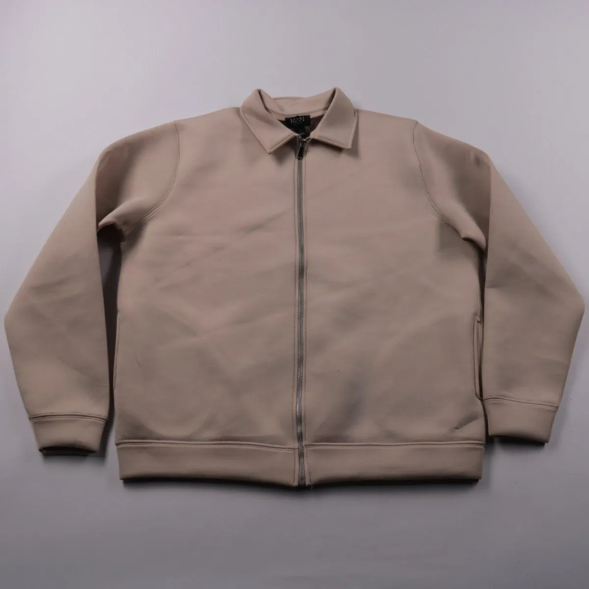 Мужская толстовка на молнии BoohooMAN бежевого цвета с воротником-стойкой и боковыми карманами. Подойдёт для повседневной носки в прохладную погоду и в качестве второго слоя. Практичный материал с добавлением эластана хорошо тянется и не сковывает движения.