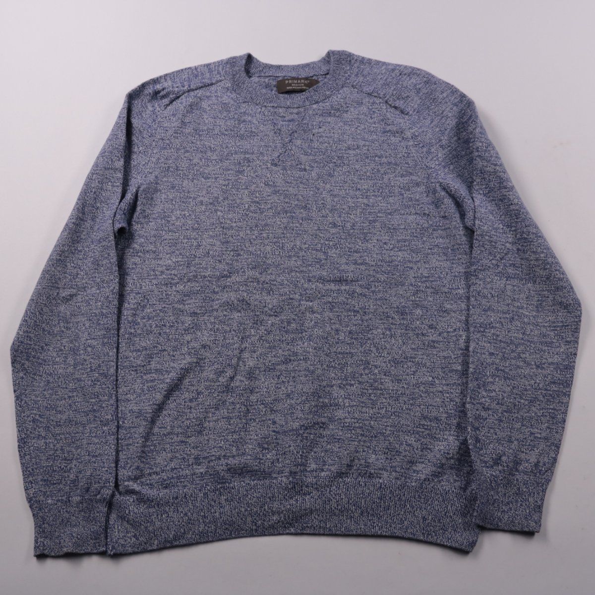 Мужской джемпер Primark из плотного трикотажа с круглым вырезом, выполнен в синем меланже. Подойдёт для повседневной носки и офисных образов в прохладную погоду. Практичный плюс — натуральный хлопок, комфортный к телу и простой в уходе.