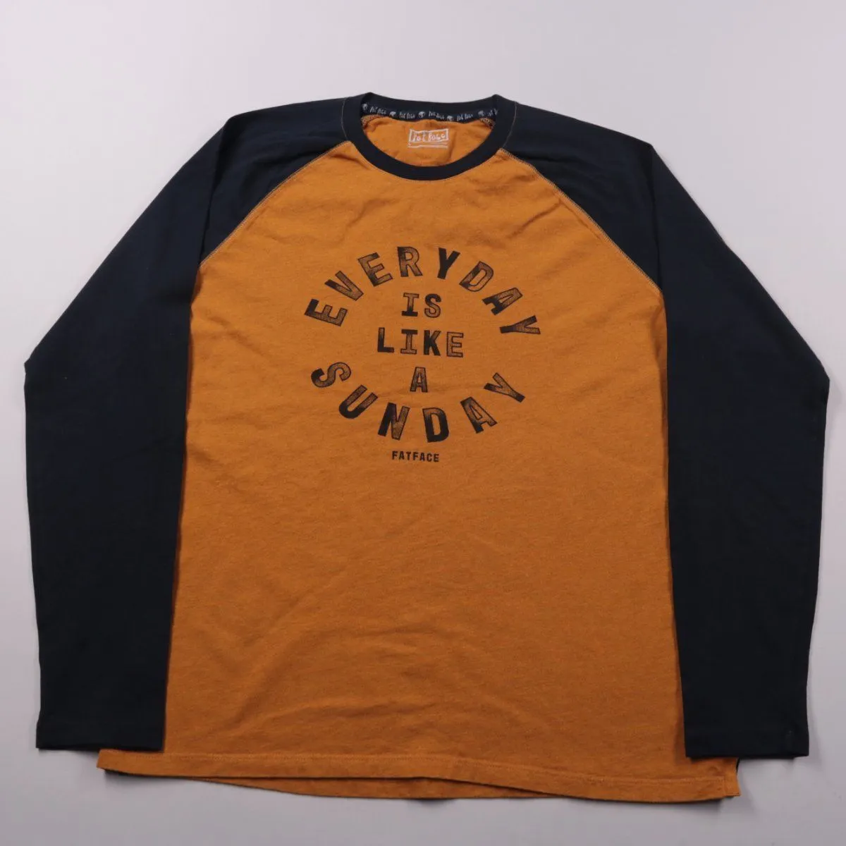 Мужской лонгслив Fat Face с рукавами реглан и контрастными рукавами, спереди принт «Everyday is like a Sunday». Подойдёт для повседневной носки и расслабленных образов в прохладную погоду. Натуральный хлопок комфортно дышит и приятен к телу.
