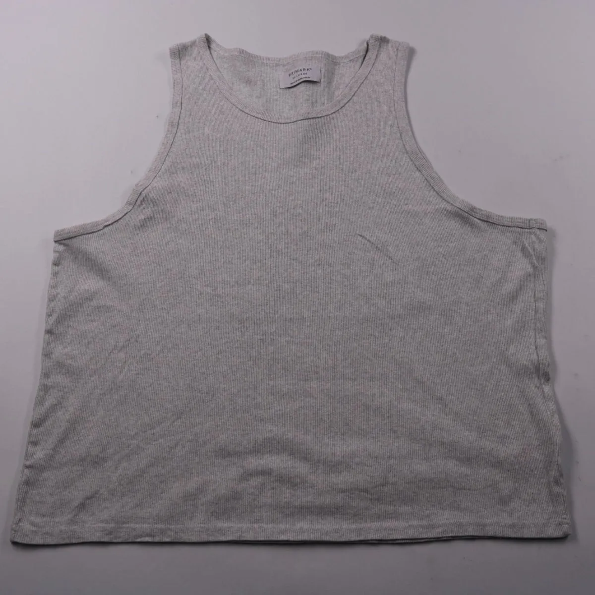 майка Primark в сером меланже, выполнена из мягкого трикотажа в рубчик. Подойдёт для повседневной носки, спорта и как базовый слой под рубашку или жакет. Практична тем, что хорошо тянется и комфортно сидит по фигуре.