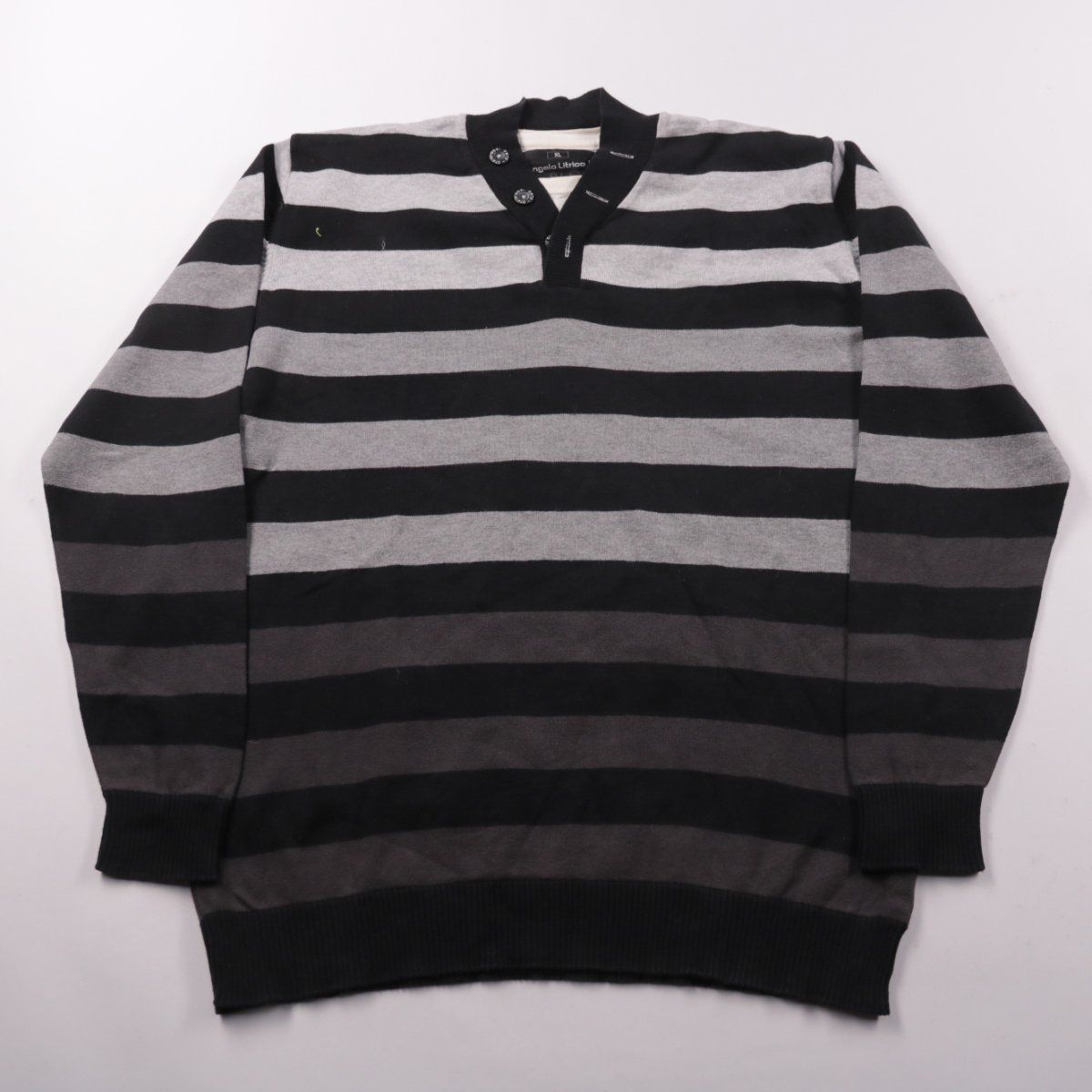 Мужской джемпер Angelo Litrico в черно-серую полоску с воротником-стойкой и короткой планкой на пуговицах. Подойдет для повседневной носки в прохладную погоду, хорошо сочетается с джинсами и чиносами. Практичный плюс — трикотажные манжеты и пояс держат форму и не задираются.