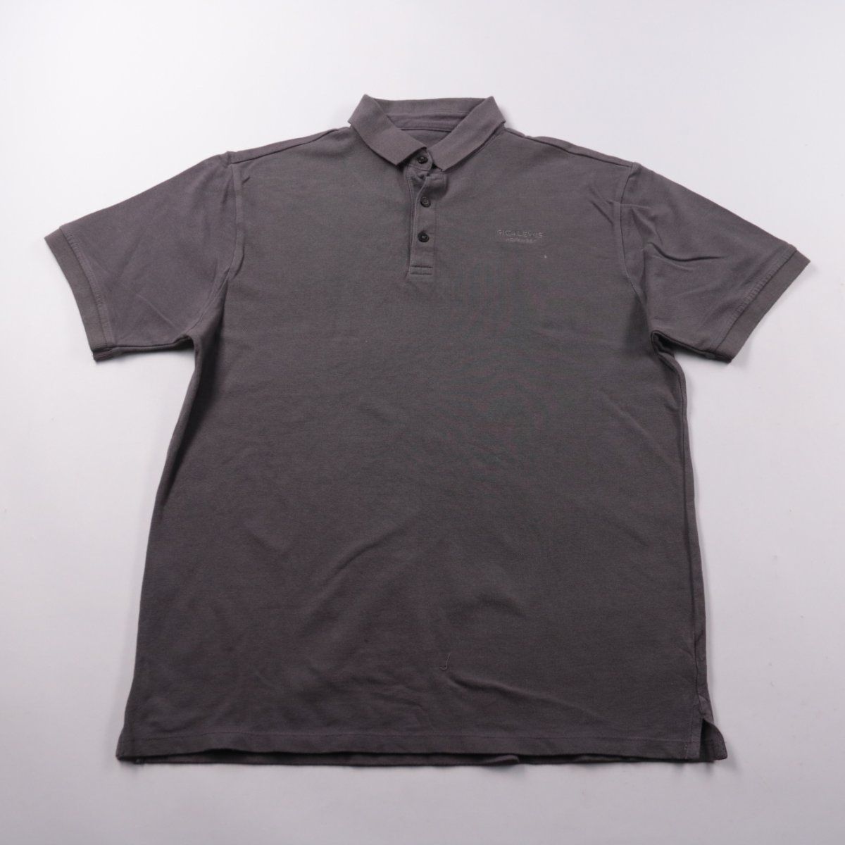 Мужское поло Rica Lewis Workwear тёмно-серого цвета с коротким рукавом и застёжкой на пуговицы. Подойдёт для повседневной носки и работы в тёплую погоду. Хлопковая ткань хорошо пропускает воздух и комфортна к телу.