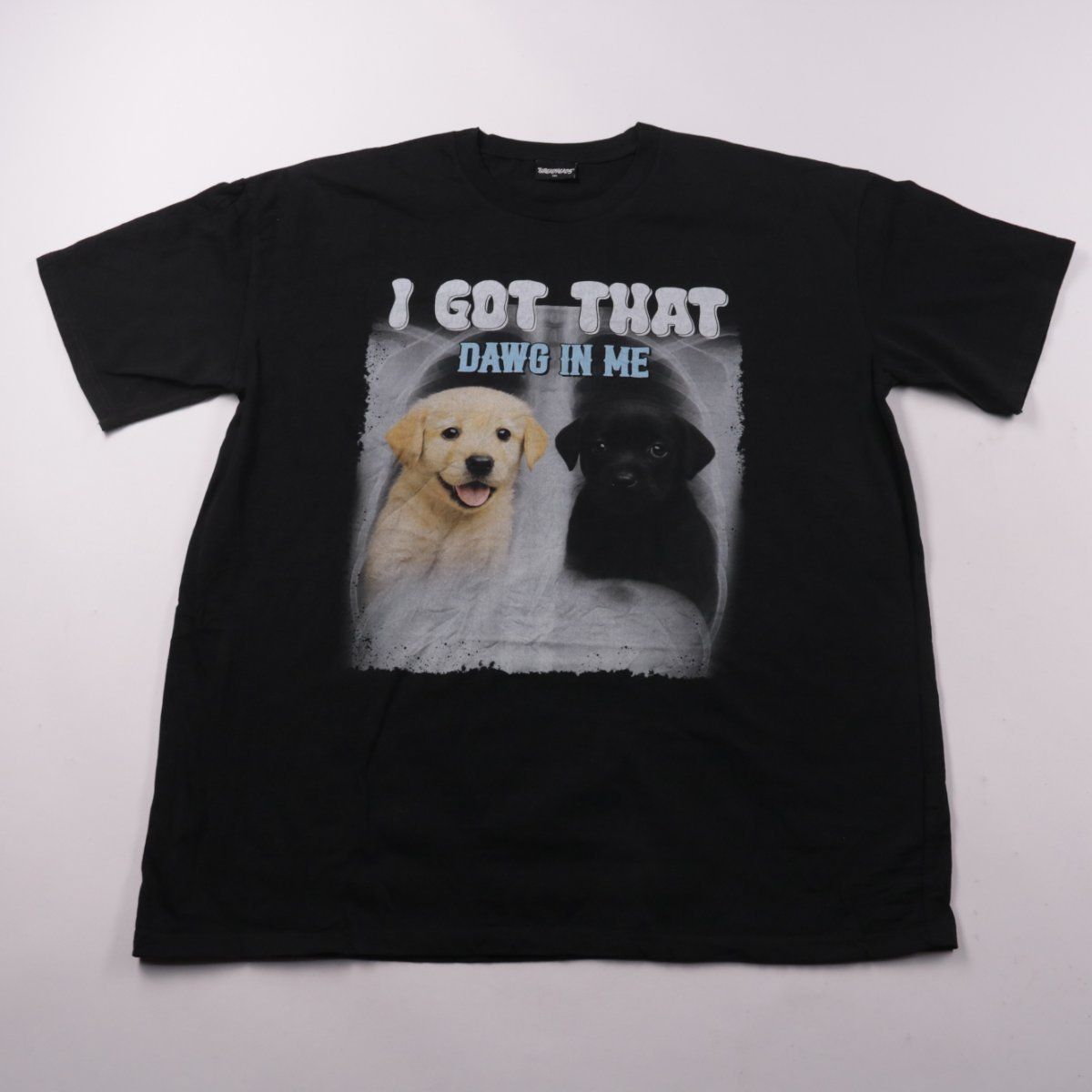Футболка Threadheads с крупным принтом и надписью «I GOT THAT DAWG IN ME», цвет чёрный. Подойдёт для повседневных образов и уличного стиля, хорошо сочетается с джинсами и шортами. Практичный плюс — тёмная ткань и принт не так заметно собирают следы носки в течение дня.