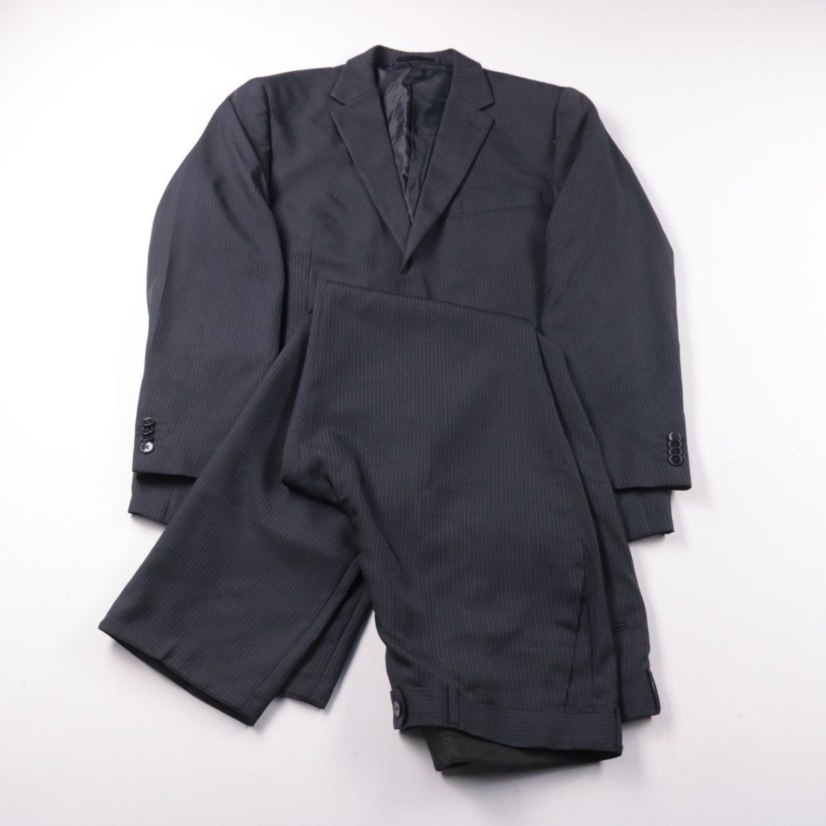 Мужской костюм Canda в тёмно-синем цвете с тонкой полоской, пиджак на двух пуговицах и классические брюки. Подойдёт для офиса, собеседований и торжественных мероприятий благодаря сдержанному классическому стилю. Практичный материал из полиэстера меньше мнётся и проще в уходе.