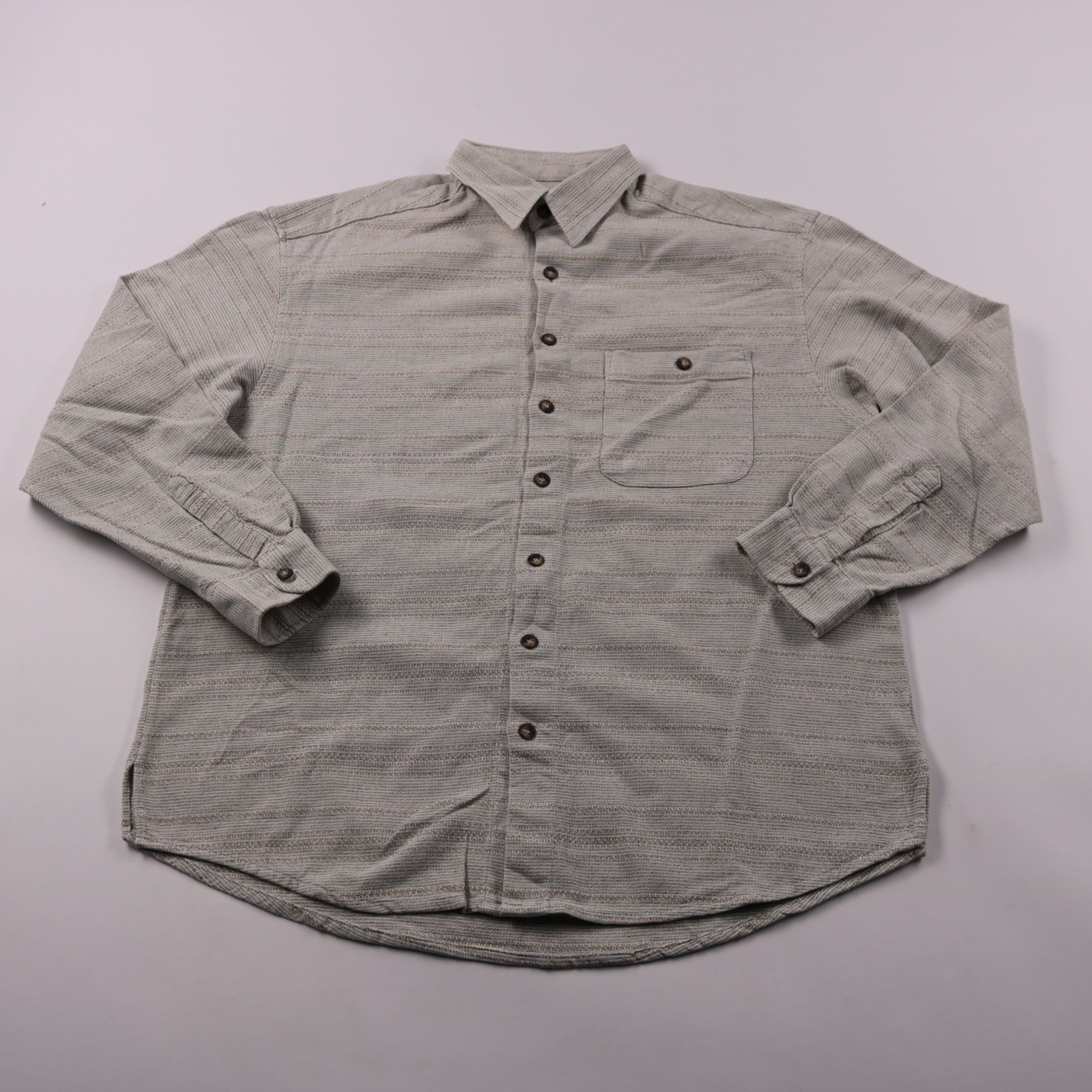 Мужская рубашка S.Oliver из фактурной ткани в серо-бежевую полоску, с длинным рукавом и нагрудным карманом на пуговице. Подойдёт для повседневной носки в городе или офисе в casual-стиле. Практичный плюс — плотный материал хорошо держит форму и выглядит...
