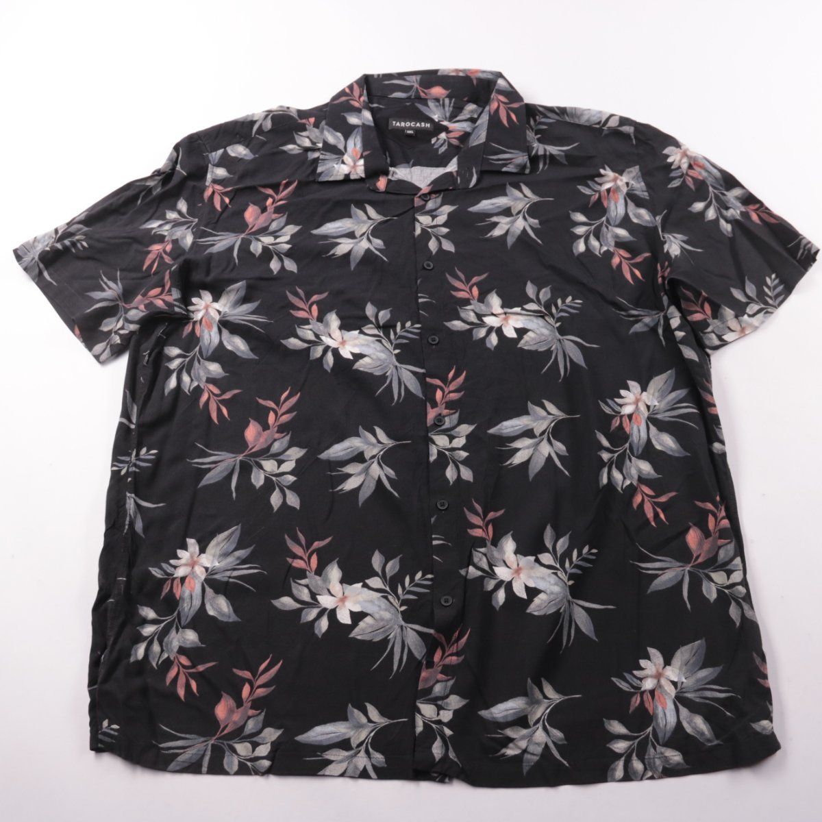 Мужская рубашка Tarocash с коротким рукавом и цветочным принтом на чёрном фоне. Подойдёт для лета и отпуска, хорошо сочетается с шортами или джинсами. Вискоза EcoVero лёгкая и приятная к телу.