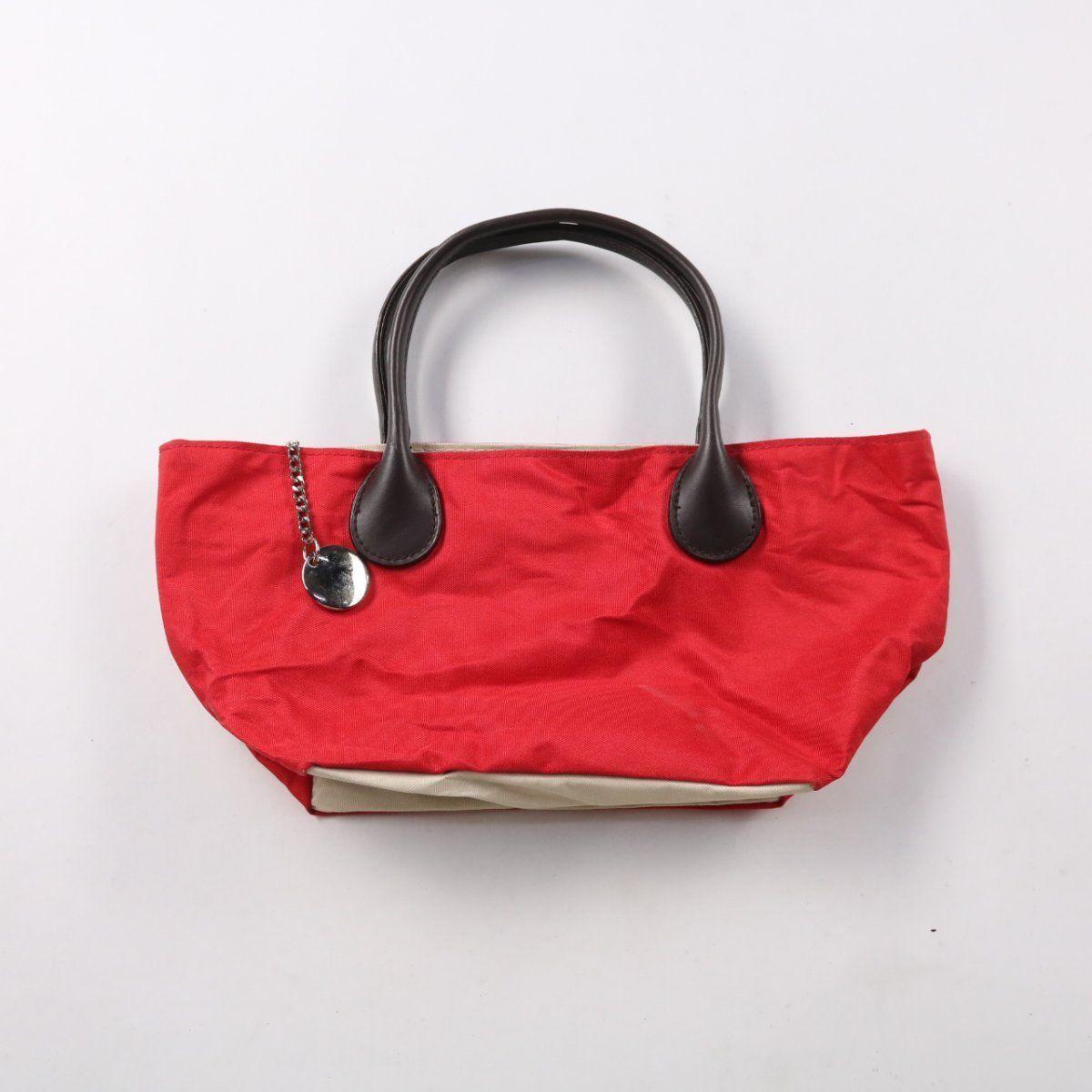 Сумка из текстиля красного цвета с короткими ручками и застёжкой-молнией. Подойдёт для повседневных дел и прогулок, внутри светлая подкладка. Лёгкая и компактная, удобно носить в руке.