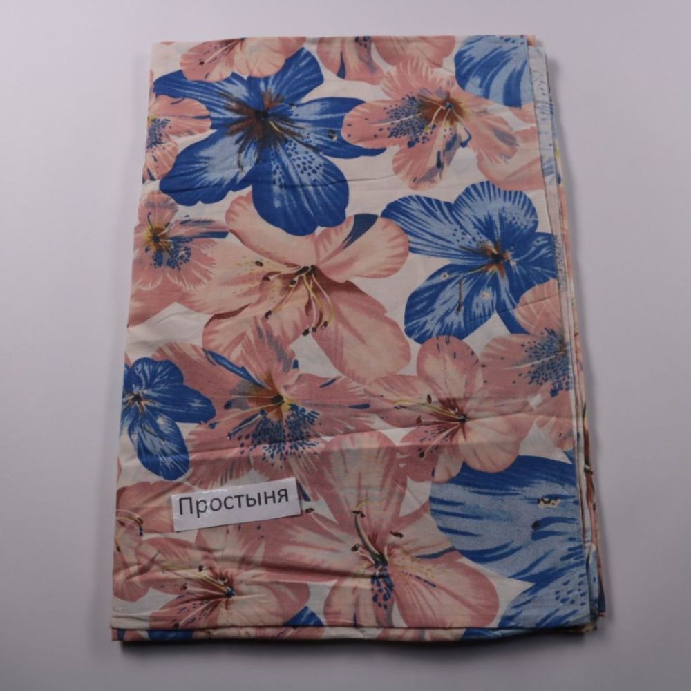 Простыня с цветочным принтом в розово-синих тонах, подойдёт для спальни и дачи. Хороший вариант для повседневного использования и для обновления интерьера без замены всего комплекта. Легко сочетать с однотонными наволочками и пододеяльником.