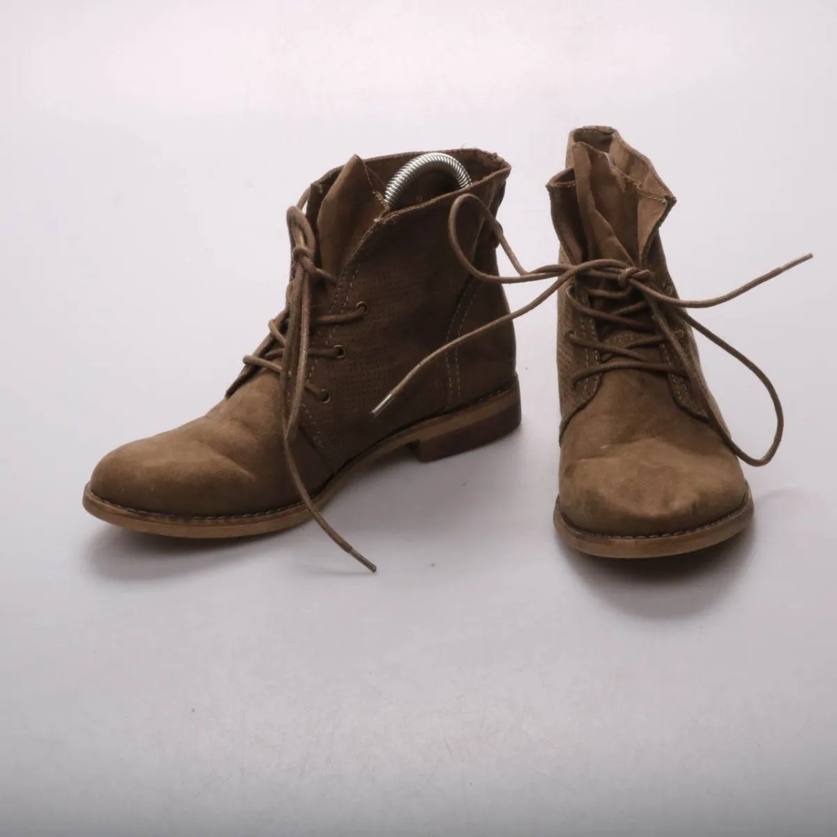 Женские ботильоны Graceland коричневого цвета на шнуровке, с перфорацией по бокам и невысоким каблуком. Подойдут для повседневной носки в межсезонье с джинсами или платьями. Практичная подошва с рельефом помогает увереннее держаться на разных покрытиях.