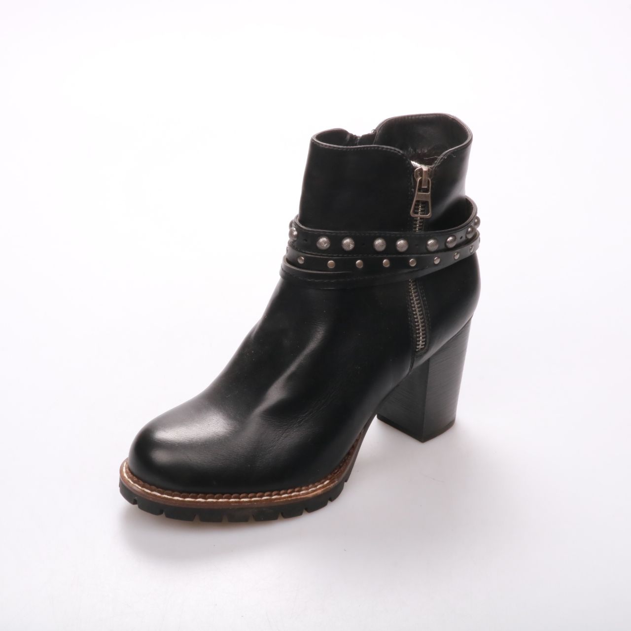 Женские ботильоны Graceland из гладкого материала под кожу, с боковой молнией и ремешками с заклёпками. Подойдут для повседневной носки в межсезонье и на выход, когда хочется устойчивого каблука. Рельефная подошва даёт хорошее сцепление на мокром асфал...
