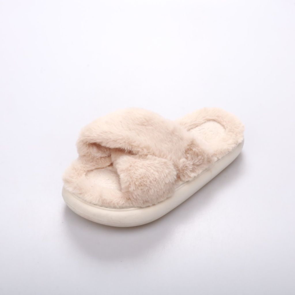 Домашние тапочки с мягким искусственным мехом и широкими перекрещенными ремешками. Подойдут для дома и дачи, когда хочется тёплой и приятной на ощупь обуви. Толстая подошва помогает меньше ощущать холодный пол.