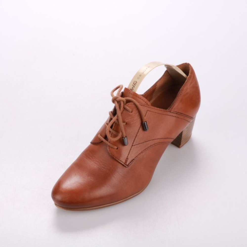 Женские кожаные туфли Tamaris на шнуровке, коричневого цвета, на устойчивом невысоком каблуке. Подойдут для офиса и повседневных образов в прохладную погоду. Практичная подошва с рельефом меньше скользит и удобна для ходьбы.
