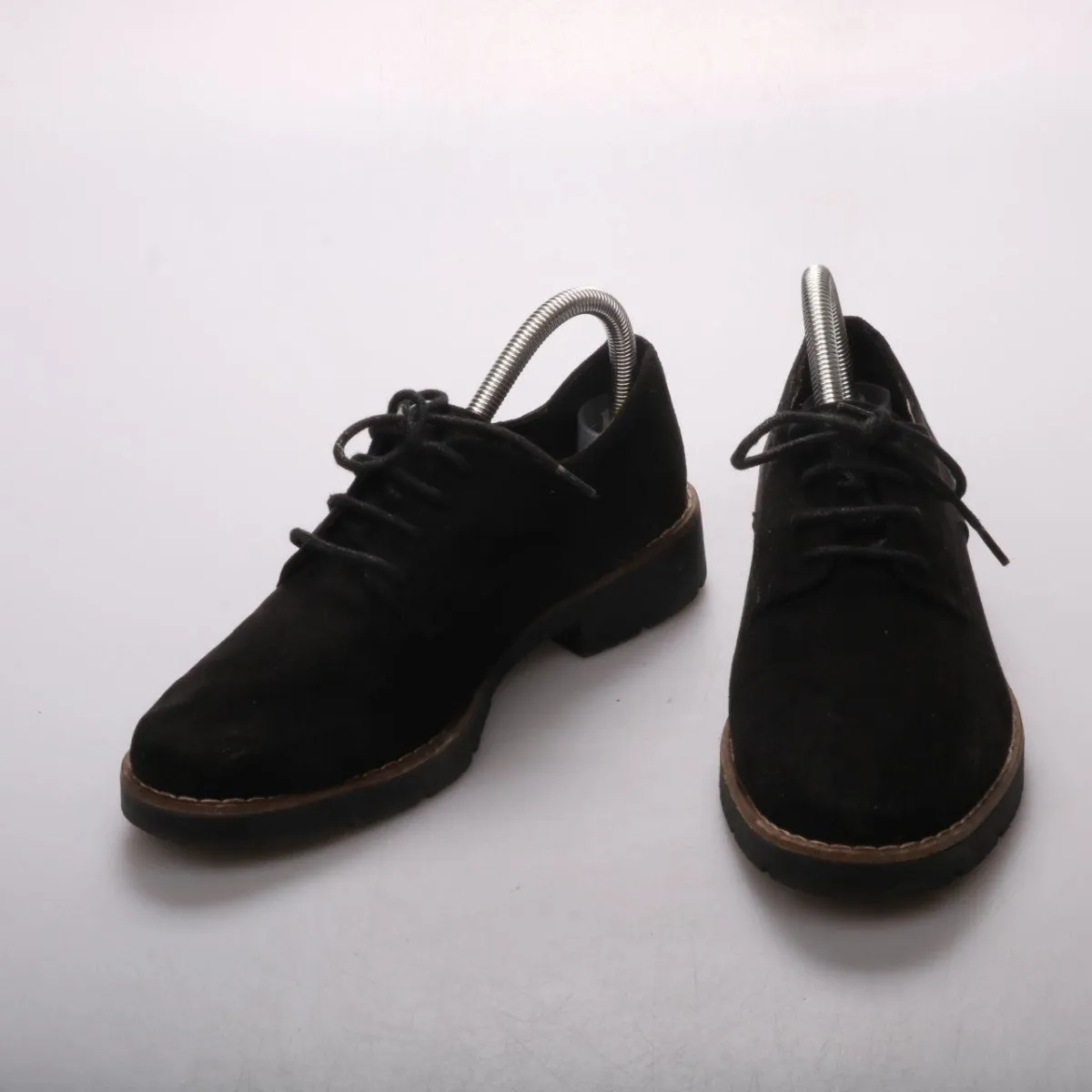 Женские туфли Graceland в стиле дерби на шнуровке, верх из замшевого материала, цвет чёрный. Подойдут для офиса и повседневных образов в демисезон. Устойчивая подошва с небольшим каблуком удобна для длительной ходьбы.