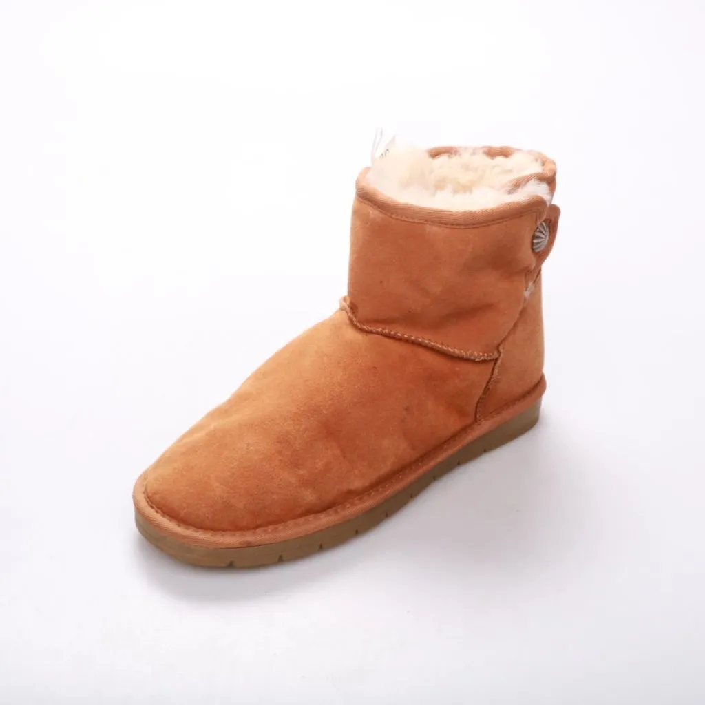 Угги из замши с тёплой меховой подкладкой и коротким голенищем. Подойдут для повседневной носки в холодную погоду и прогулок по городу. Рельефная резиновая подошва даёт более уверенное сцепление на улице.
