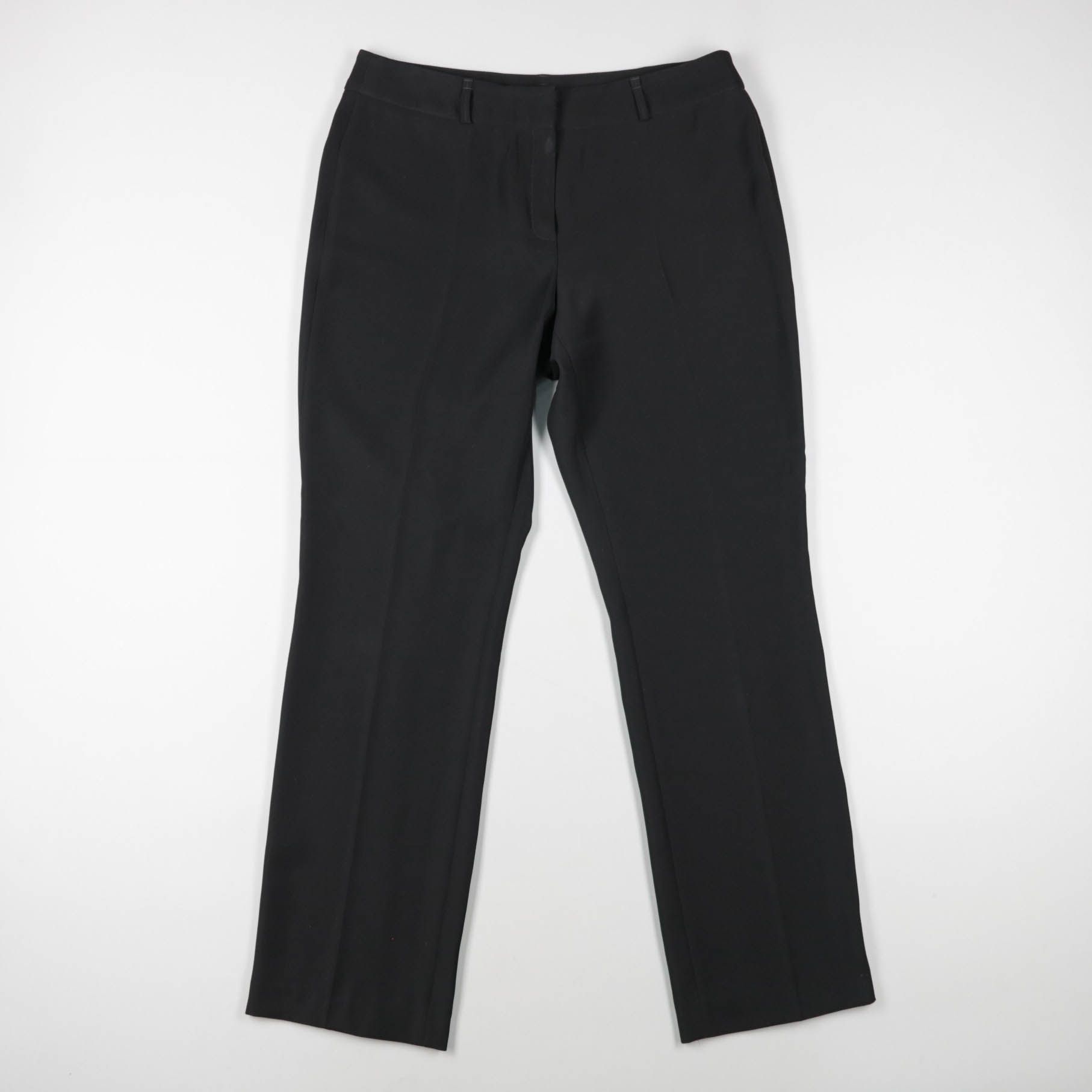 Женские классические чёрные брюки прямого кроя со стрелками и шлёвками под ремень. Подойдут для офиса, деловых встреч и повседневных образов с рубашкой или жакетом. Практичны тем, что легко сочетаются с любой обувью и верхом.