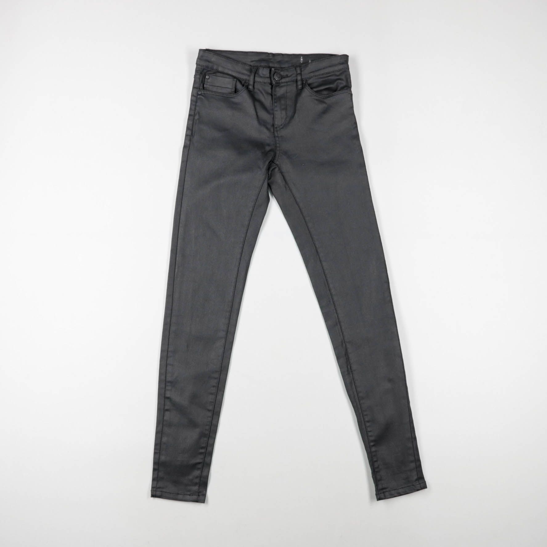 Женские зауженные брюки из плотного материала с лёгким блеском, без указания бренда. Подойдут для повседневных образов и офиса, хорошо сочетаются с рубашками и свитерами. Практичны за счёт универсального цвета и наличия карманов.