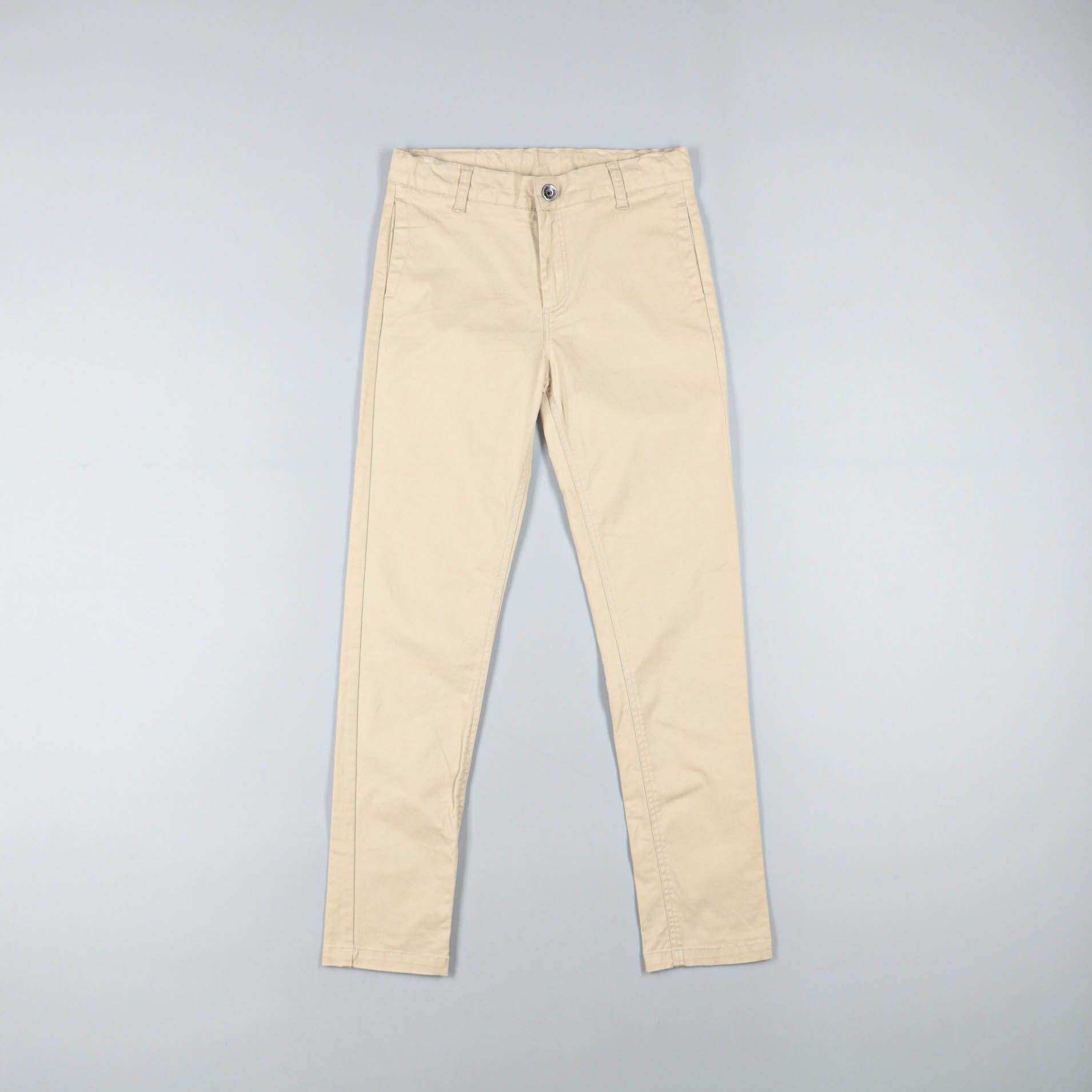 Мужские брюки чинос светло-бежевого цвета, зауженный крой с боковыми и задними карманами. Подойдут для повседневных и более собранных образов с рубашкой или футболкой. Практичный плюс — нейтральный оттенок легко сочетается с большинством вещей.