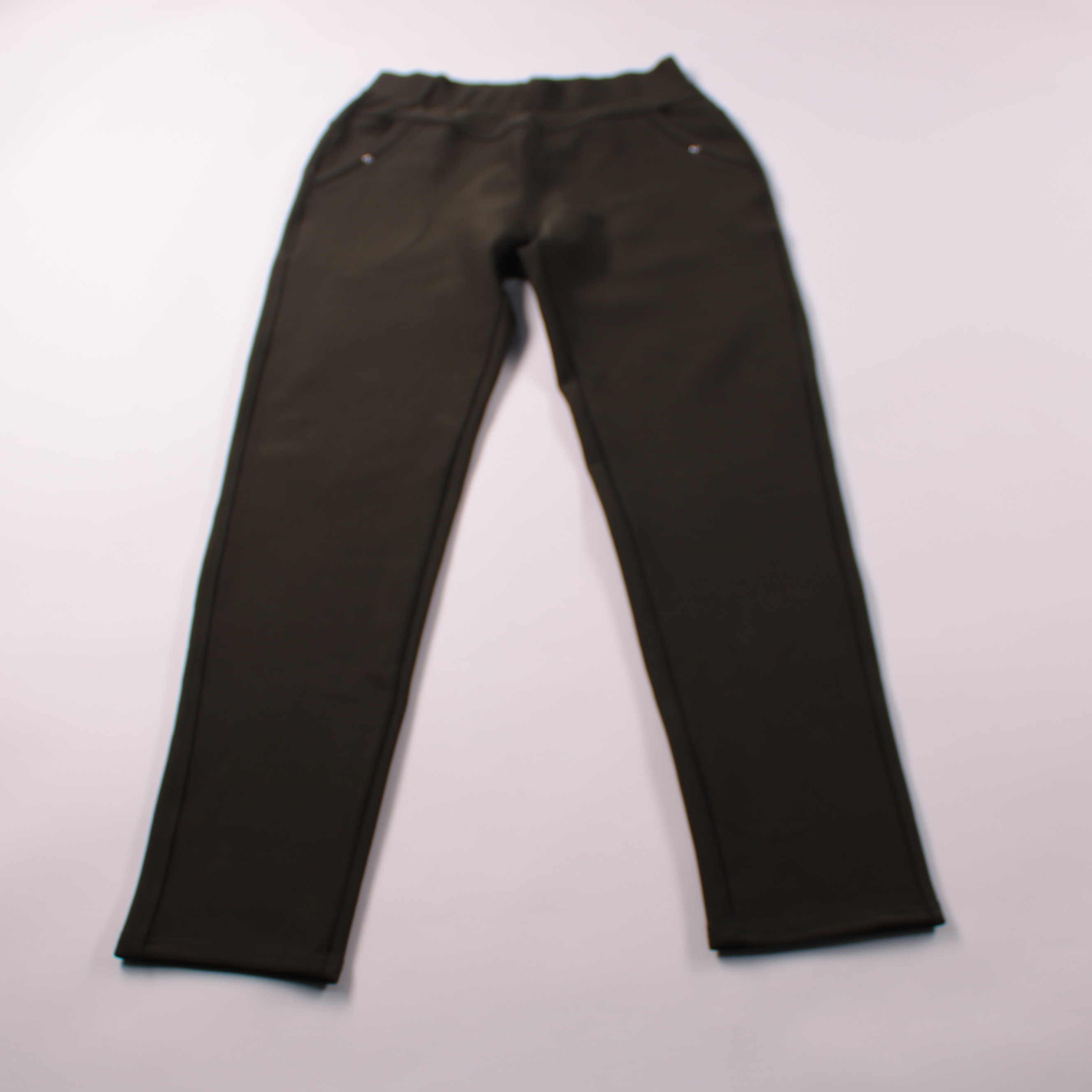 Женские черные брюки прямого кроя на эластичном поясе, без заметного декора. Подойдут для повседневных образов и в офис, легко сочетаются с рубашками и свитерами. Практичный плюс — тянущаяся посадка и комфорт при носке.