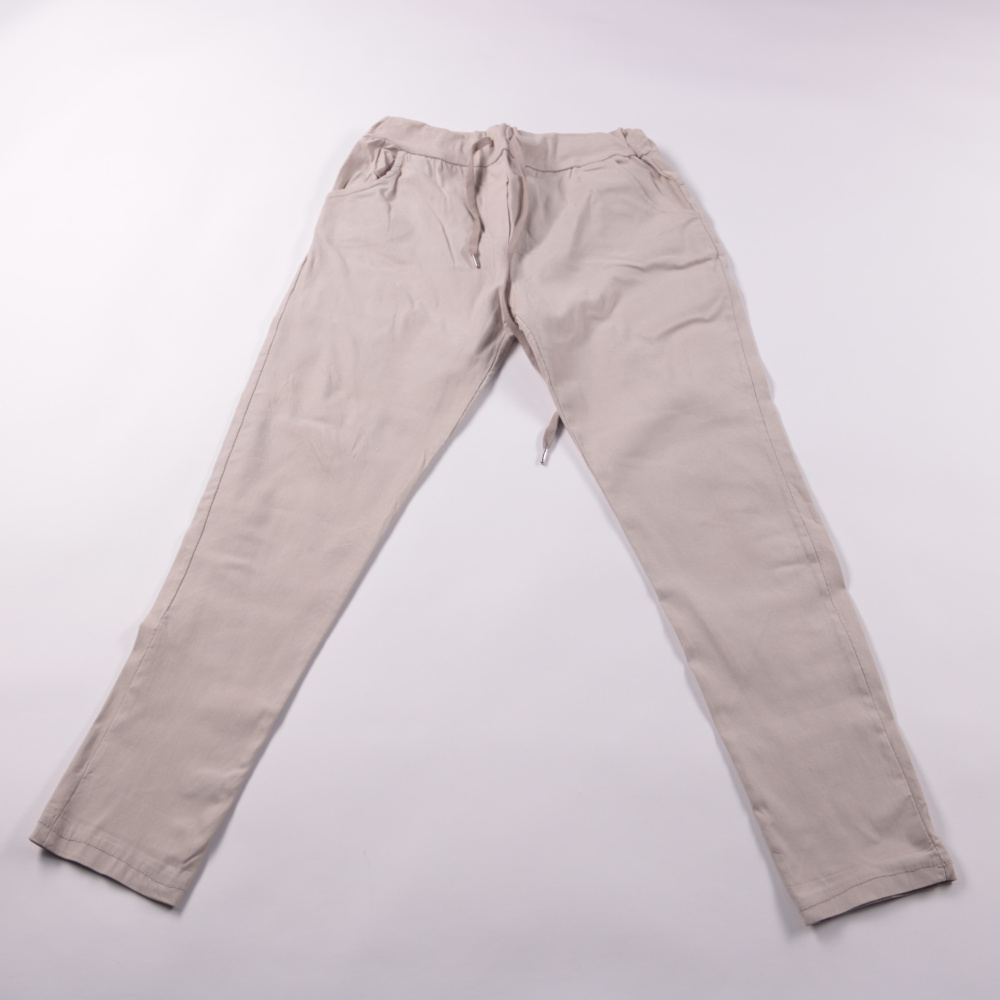 Женские брюки зауженного кроя в бежевом цвете с удобной посадкой и поясом на шнурке. Подойдут для повседневных образов, прогулок и офиса в стиле casual. Практичная ткань с вискозой и небольшим добавлением эластана комфортно сидит и почти не сковывает д...