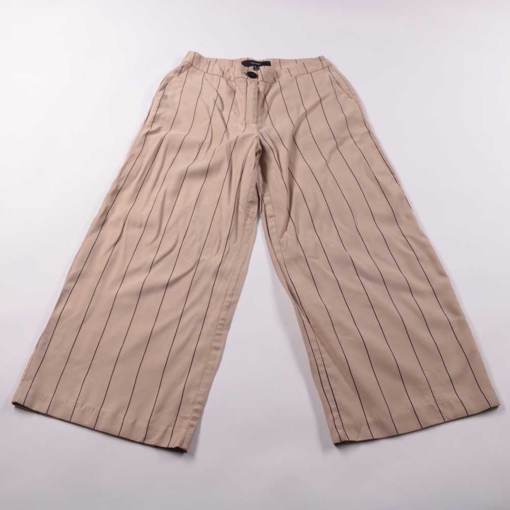 Женские брюки Vero Moda бежевого цвета в тонкую вертикальную полоску, прямого кроя. Подойдут для офиса и повседневных образов с рубашкой или базовой футболкой. Лёгкая вискозная ткань хорошо драпируется и комфортна в носке.