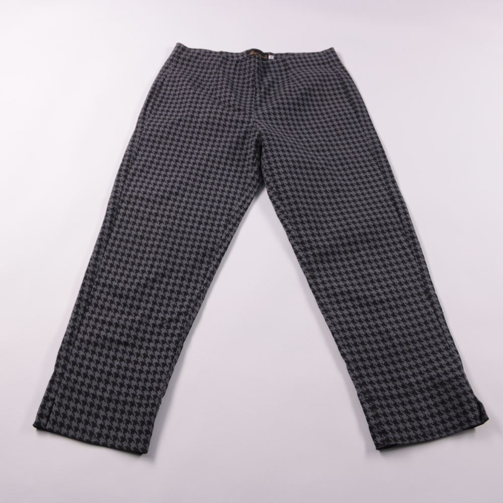 Женские брюки Magierinne с классической посадкой и узором «гусиная лапка» в серо-чёрной гамме. Подойдут для офиса и повседневных образов в прохладную погоду. Плотная ткань держит форму и меньше мнётся.