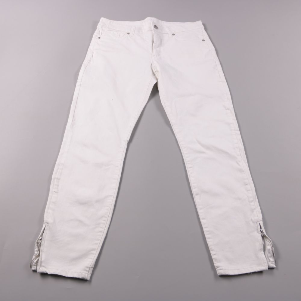 Женские белые брюки Montego зауженного кроя, с классической посадкой и молниями внизу штанин. Подойдут для повседневных образов и летних комплектов со светлой обувью. Практичны тем, что легко сочетаются с базовыми вещами и не утяжеляют образ.