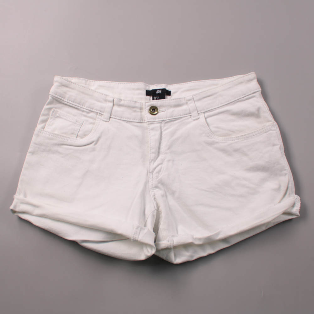 Женские белые джинсовые шорты H&M из плотного хлопка с добавлением эластана, с классической посадкой и подворотами по низу. Подойдут для летних прогулок и отдыха, легко сочетаются с футболками и топами. Практичны в носке за счёт эластичности и удобной ...