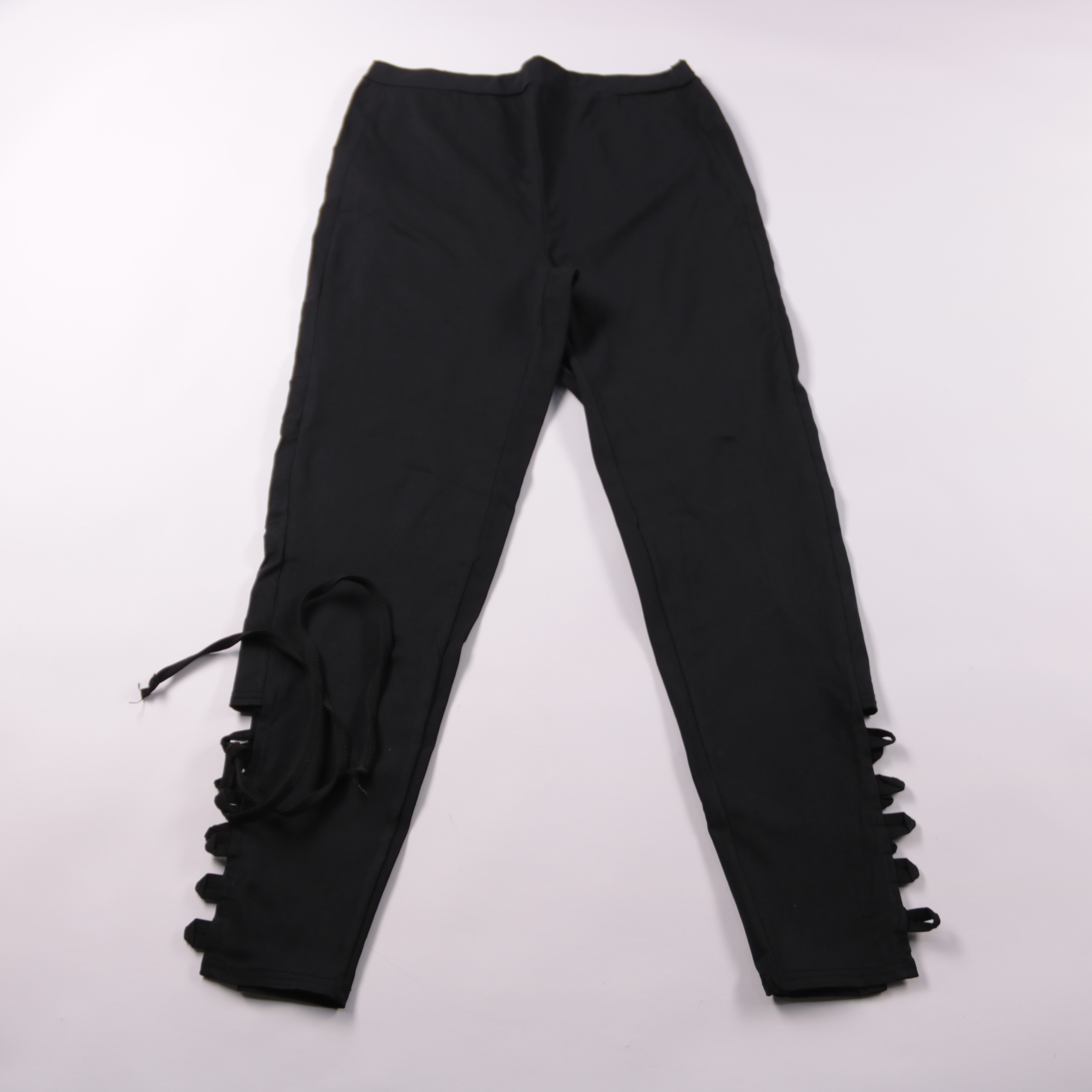 Женские чёрные брюки Boohoo с декоративной шнуровкой/переплётами по низу штанин. Подойдут для повседневных образов и выходов, легко сочетаются с топами и жакетами. Практичный плюс — базовый цвет и лаконичный крой, который удобно комбинировать с разной ...