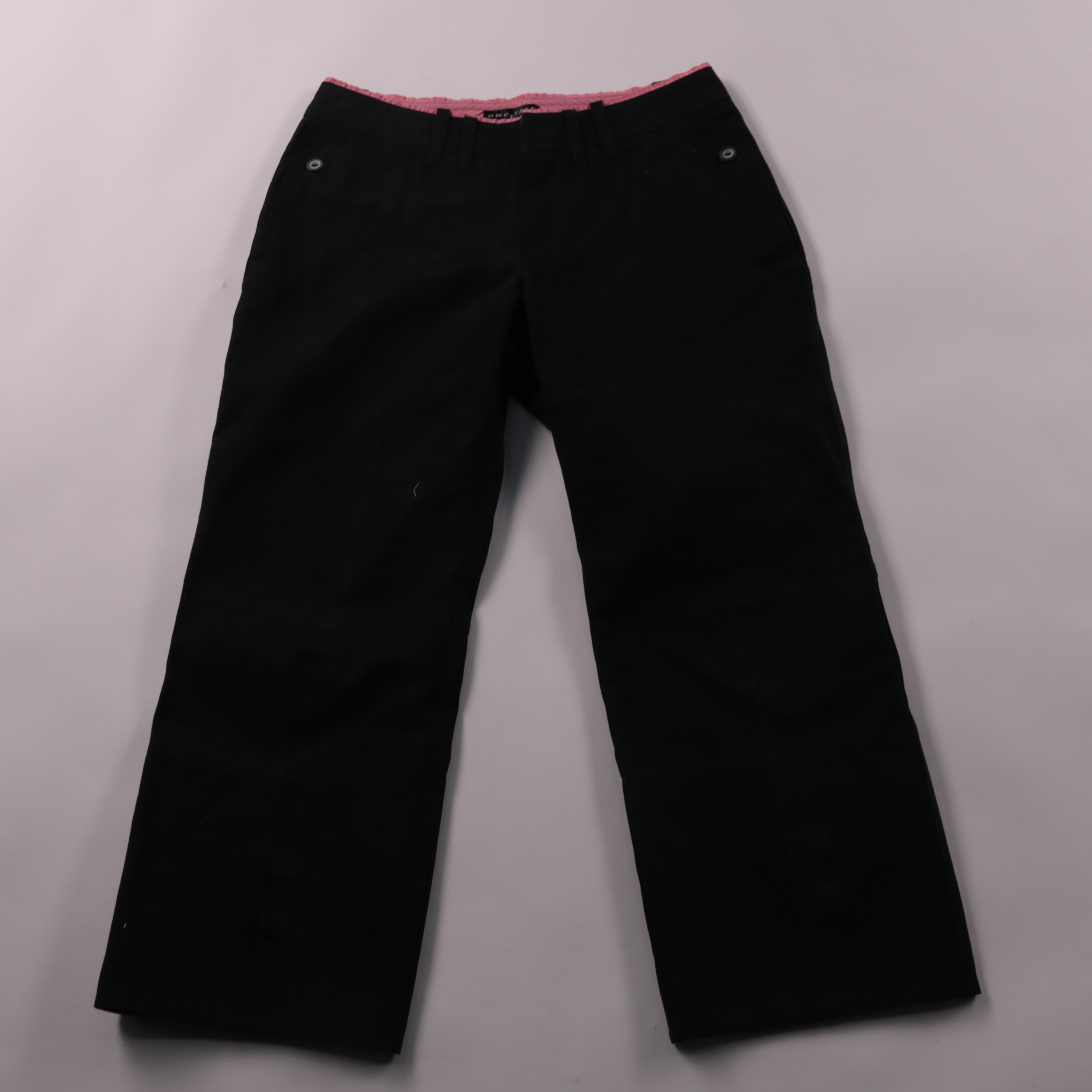 Брюки One step прямого кроя, чёрного цвета, с контрастной розовой подкладкой по поясу. Подойдут для офиса и повседневных образов с рубашкой, водолазкой или жакетом. Хлопковая ткань с небольшим добавлением полиэстера лучше держит форму и проще в уходе.