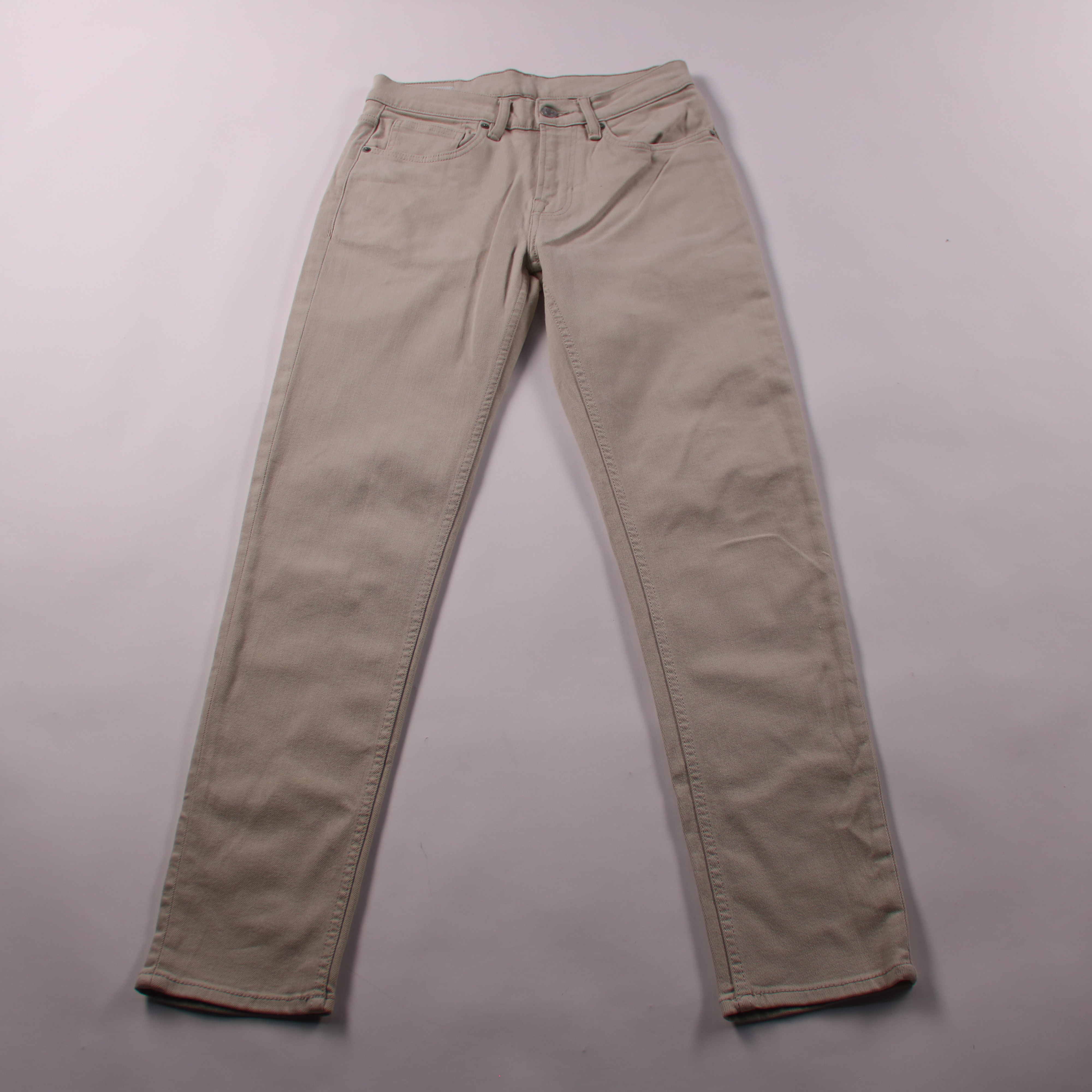 Бежевые брюки Zara из хлопкового твила со слегка зауженным кроем. Подойдут для повседневных образов и офиса с рубашкой или свитером. Материал с небольшим добавлением эластана комфортно тянется и хорошо садится по фигуре.