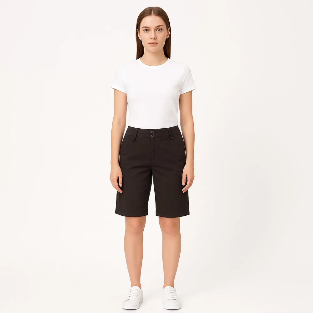 Женские брюки Tom Tailor в формате шорт/бермуд из 100% хлопка, чёрного цвета. Подойдут для летних прогулок и повседневных образов с футболкой или рубашкой. Натуральная ткань хорошо дышит и комфортна в жару.