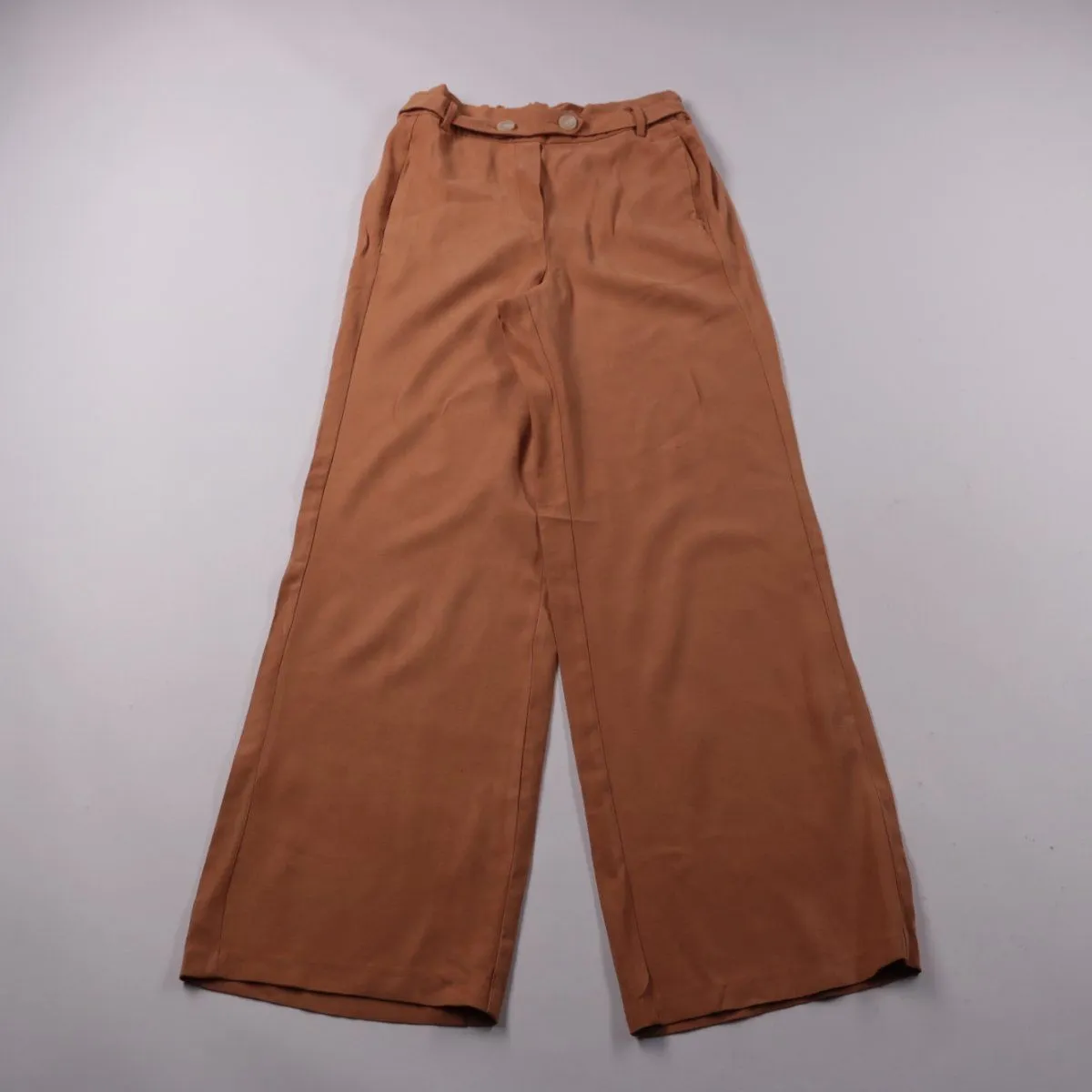 Женские брюки Next Tailoring в коричневом (карамельном) цвете, с высокой посадкой и широкими штанинами (палаццо). Подойдут для офиса и повседневных образов в тёплую погоду благодаря лёгкой ткани и аккуратной посадке на талии. Практичный плюс — немнущийся на вид материал и удобные карманы.