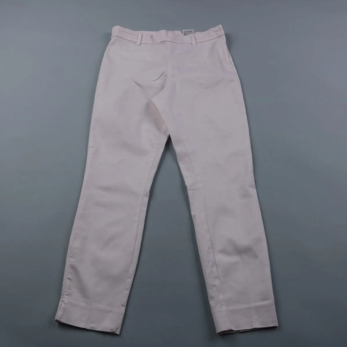 Женские брюки H&M светлого (белого) цвета, классический прямой крой с поясом и шлёвками. Подойдут для офиса и повседневных образов в тёплое время года или в помещении. Хлопковая ткань со стрейчем комфортно садится по фигуре и не сковывает движения.