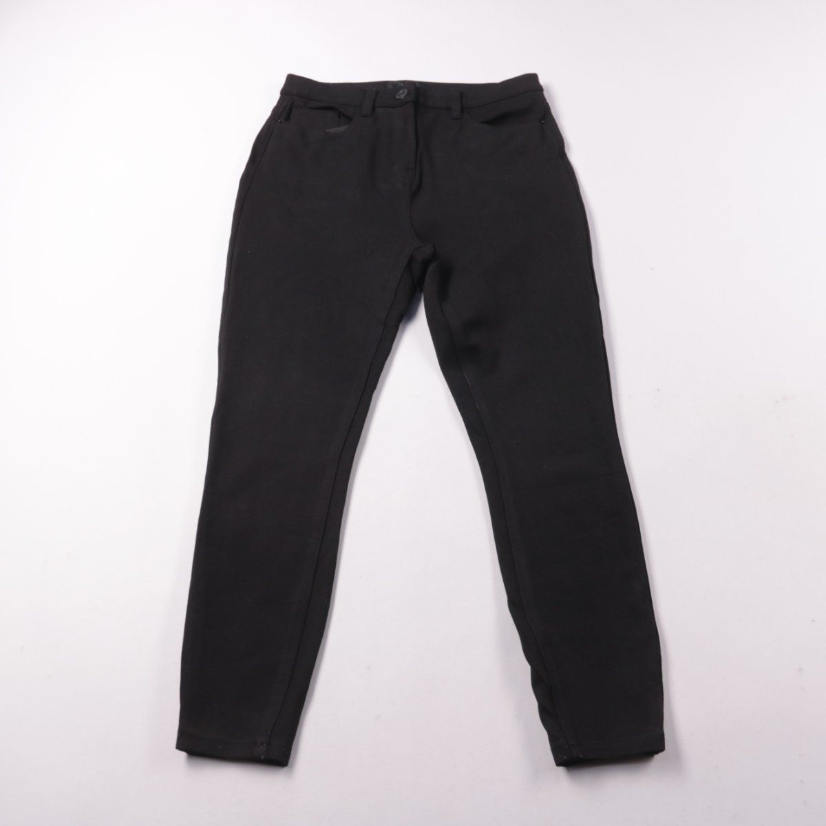 Черные женские брюки Next зауженного кроя с поясом со шлевками и карманами. Подойдут для офиса и повседневных комплектов с рубашкой или свитером. Ткань с эластаном слегка тянется и комфортно садится по фигуре.
