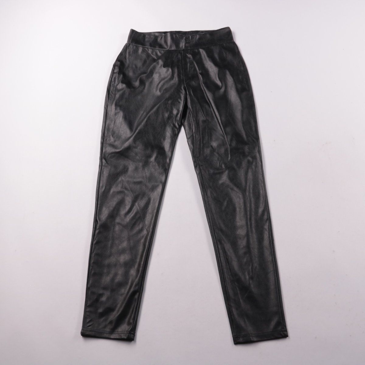 Женские брюки Primark из материала под кожу, чёрного цвета, зауженного кроя. Подойдут для повседневных образов и на выход в прохладную погоду. Практичны тем, что легко протираются и не требуют сложного ухода.