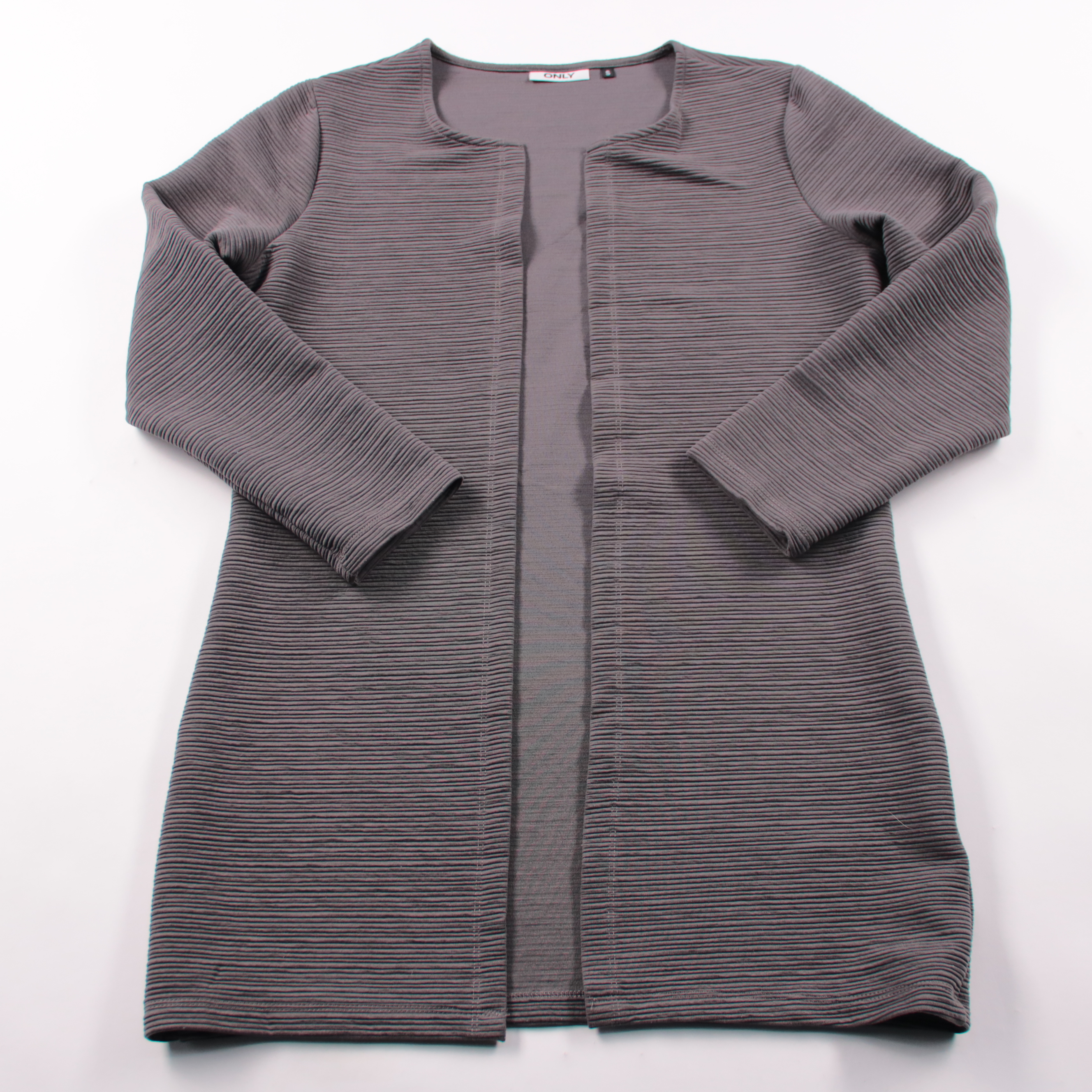 Кардиган Only серого цвета с фактурной тканью в рубчик и открытым передом без застёжки. Подойдёт для офиса и повседневных образов — удобно накидывать поверх топа или платья в прохладную погоду. Практичный материал почти не мнётся и легко сочетается с б...