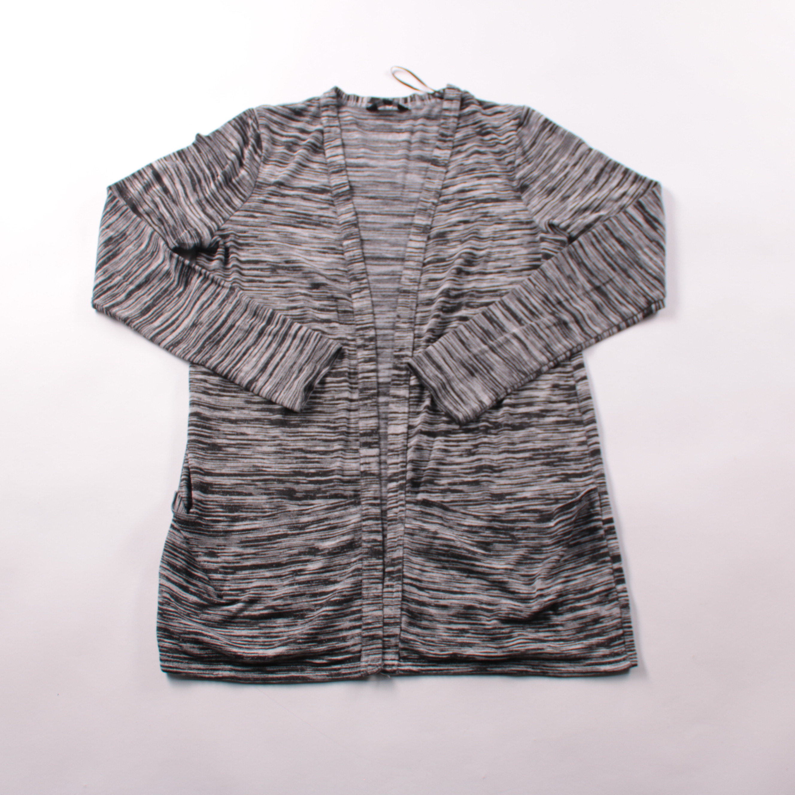 Кардиган New Look серого меланжевого цвета, мягкий и эластичный трикотаж. Подойдёт для офиса и повседневных образов, удобно носить как лёгкий верхний слой в прохладную погоду. Практичные накладные карманы спереди для мелочей.