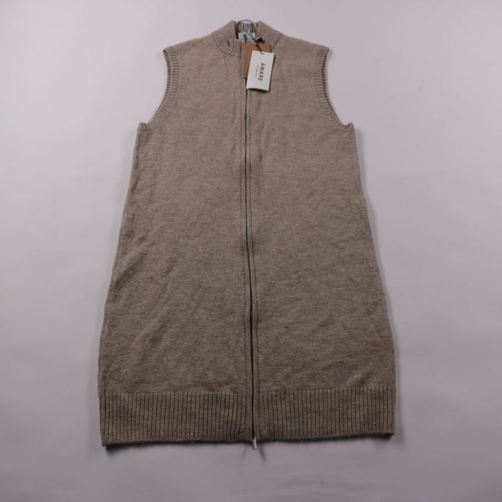 Удлинённый вязаный жилет на молнии AWARE by Vero Moda в спокойном бежево-сером оттенке. Удобно носить поверх лонгслива, рубашки или водолазки в прохладную погоду и для многослойных образов. Молния по всей длине позволяет быстро регулировать посадку и т...
