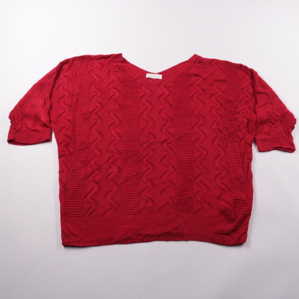 Женский вязаный джемпер Pfeffinger красного цвета с фактурным узором и V-образным вырезом. Подойдёт для повседневных образов в прохладную погоду, хорошо сочетается с джинсами и юбками. Смесь акрила и вискозы мягкая и неприхотлива в уходе.