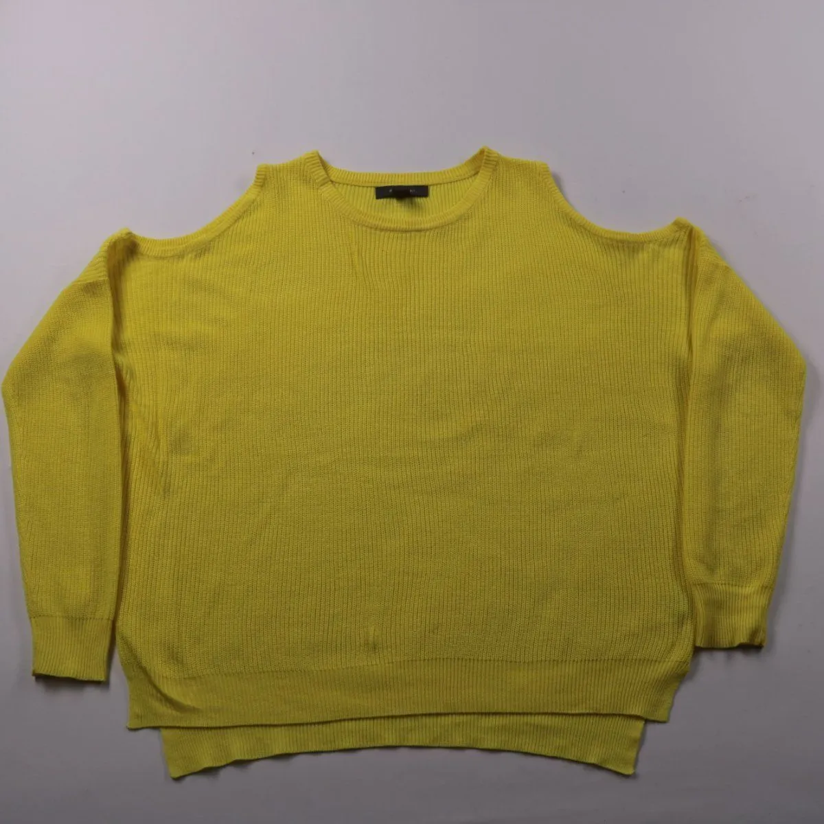 Женский джемпер Primark ярко-жёлтого цвета в рубчик, с вырезами на плечах (cold shoulder). Подойдёт для повседневных образов и встреч, хорошо сочетается с джинсами и юбками. Акриловый трикотаж мягкий и не требует сложного ухода.