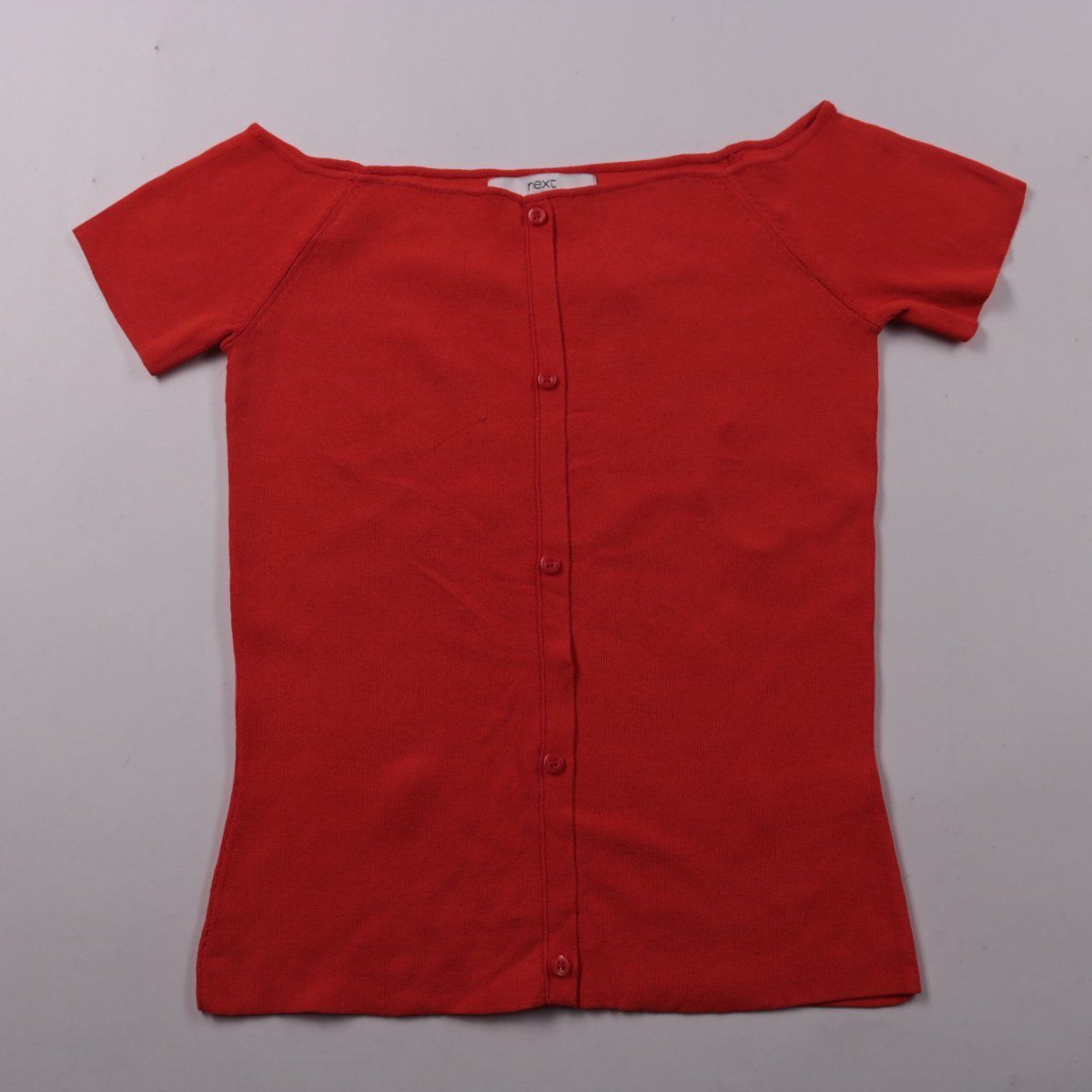 Женский трикотажный кардиган Next красного цвета с коротким рукавом и застёжкой на пуговицы. Подойдёт для тёплой погоды и для офиса/учёбы как лёгкий верхний слой. Практичный материал на основе вискозы хорошо дышит и быстро сохнет после стирки.