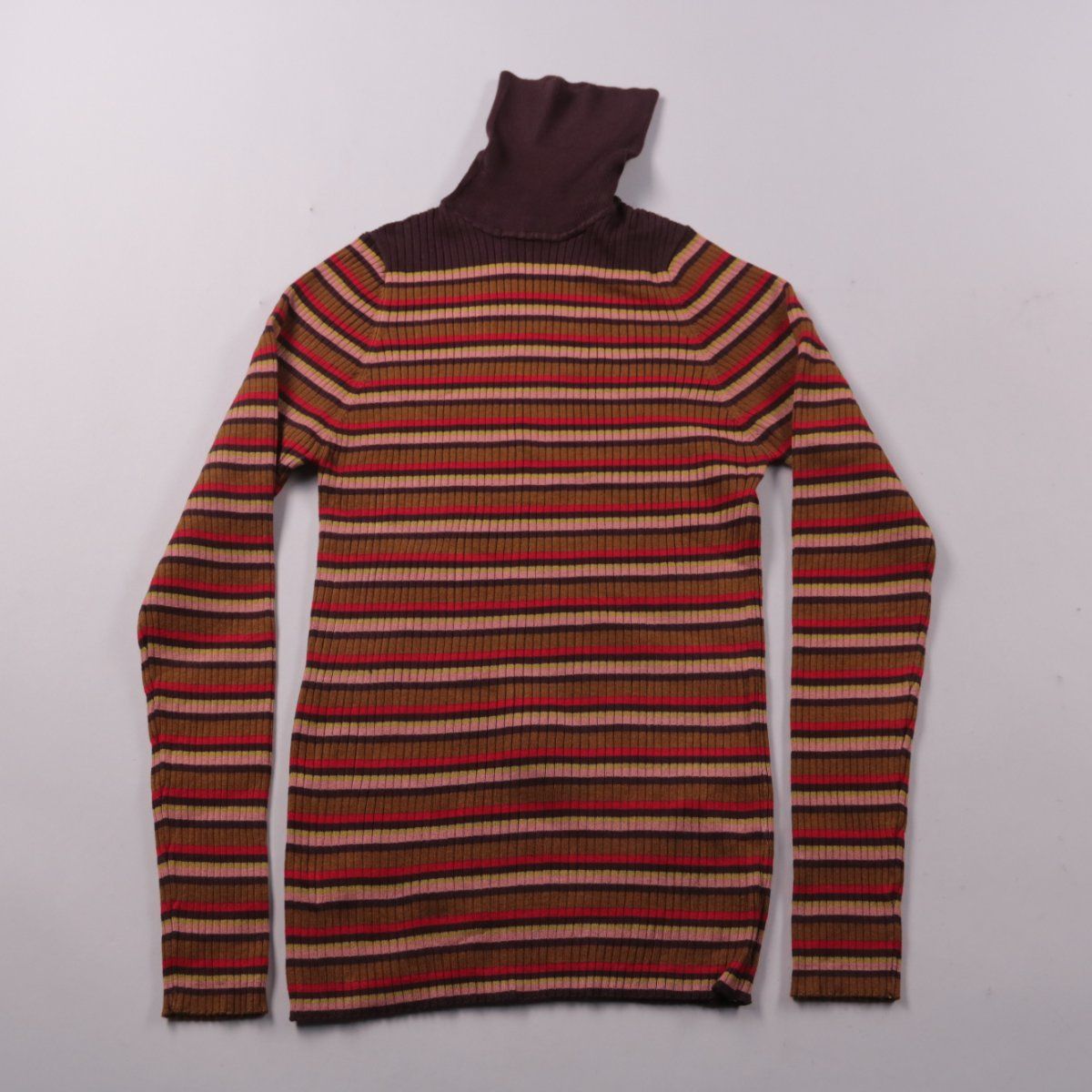Женская водолазка Primark в рубчик с разноцветными полосками и высоким воротником. Подойдёт для прохладной погоды и многослойных образов на каждый день. Трикотаж тянется и комфортно садится по фигуре.