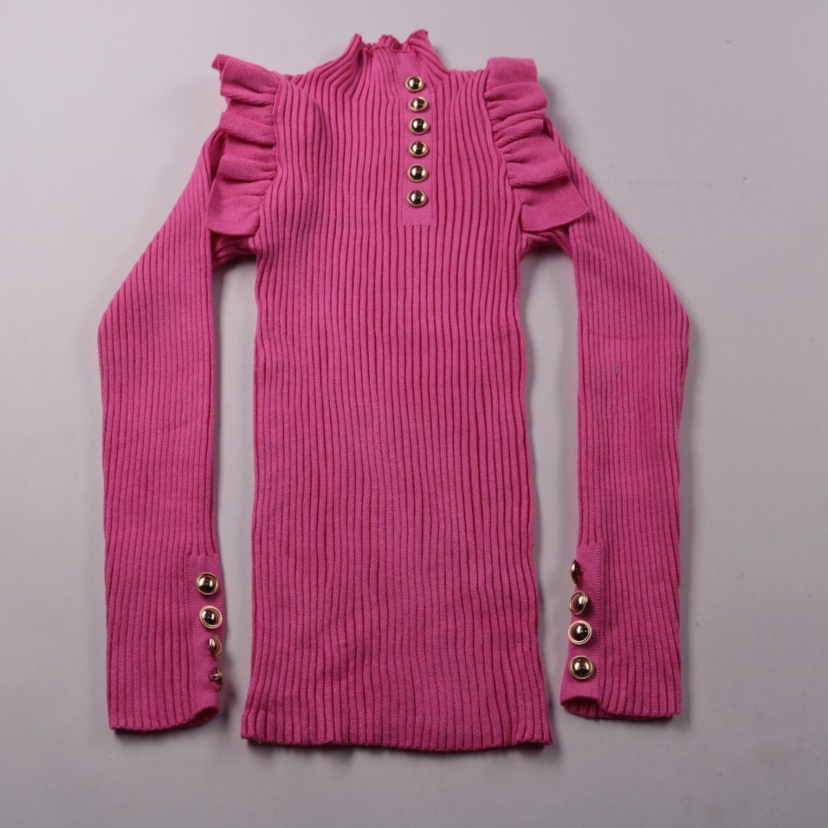 Розовая водолазка SHEIN в рубчик с оборками на плечах и декоративными пуговицами у горловины. Подойдёт для прохладной погоды и многослойных образов с жакетом или пальто. Трикотаж хорошо тянется и комфортно садится по фигуре.