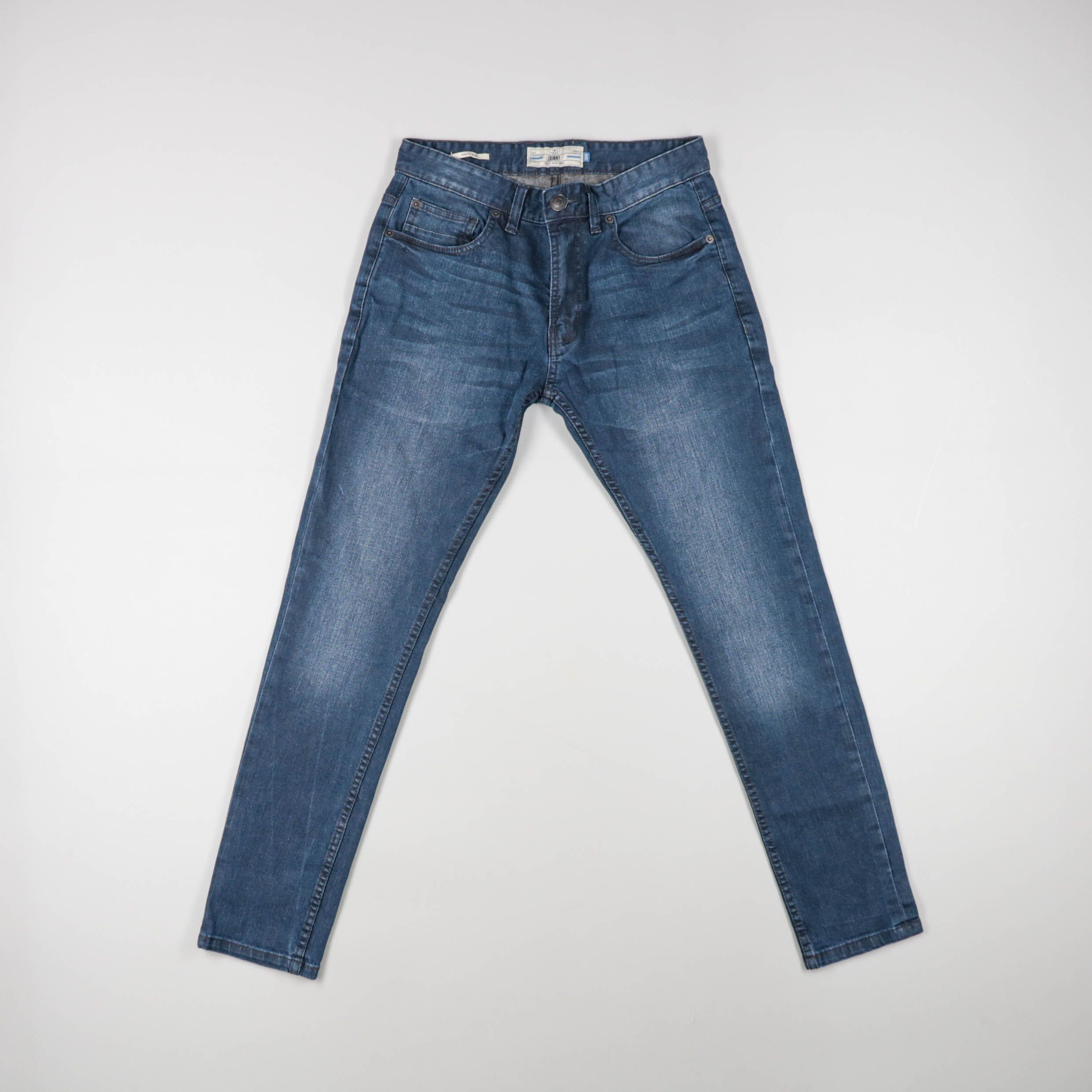 Женские синие джинсы из денима с классической посадкой и слегка зауженными штанинами. Подойдут на каждый день и для повседневных образов с кедами или ботинками. Практичный плотный материал хорошо держит форму и не требует сложного ухода.
