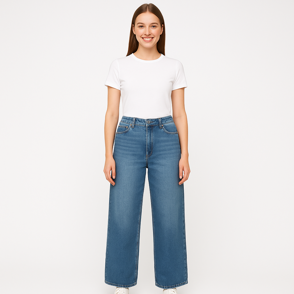 Женские джинсы George Fashion Fit из плотного голубого денима, прямой/слегка широкий крой. Подойдут для повседневных образов с кедами или ботинками в любое время года. Натуральный хлопок хорошо держит форму и комфортен в носке.