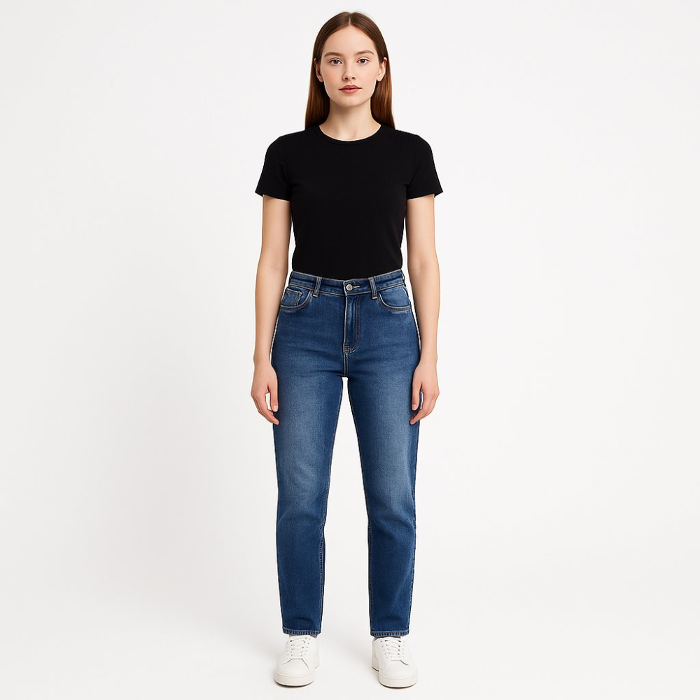 Женские джинсы Bv Very синего цвета, модель Regular с классической посадкой и прямыми штанинами. Подойдут на каждый день — для работы, прогулок и базовых образов с кедами или ботинками. Эластичная ткань хорошо тянется и комфортно сидит по фигуре.