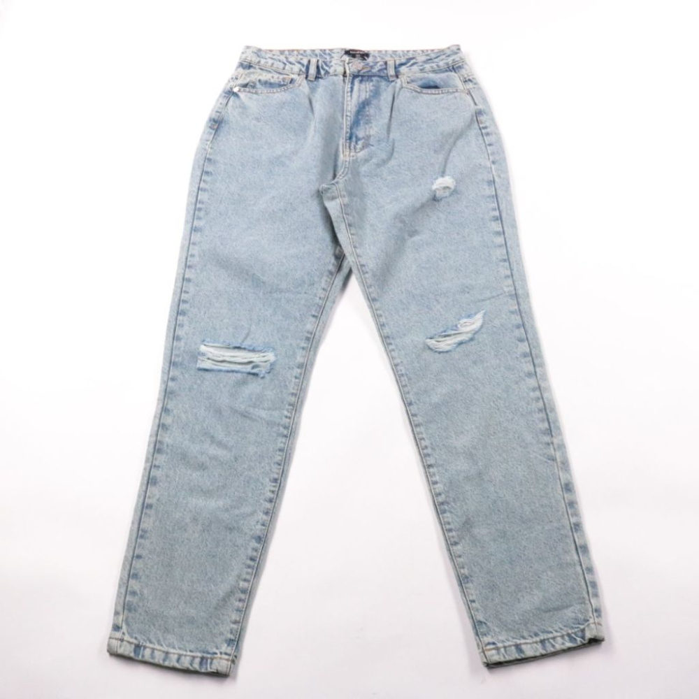 Женские джинсы Boohoo из светло-голубого денима с декоративными потертостями. Подойдут для повседневных образов в стиле casual и streetwear. Плотный хлопок хорошо держит форму и не требует сложного ухода.