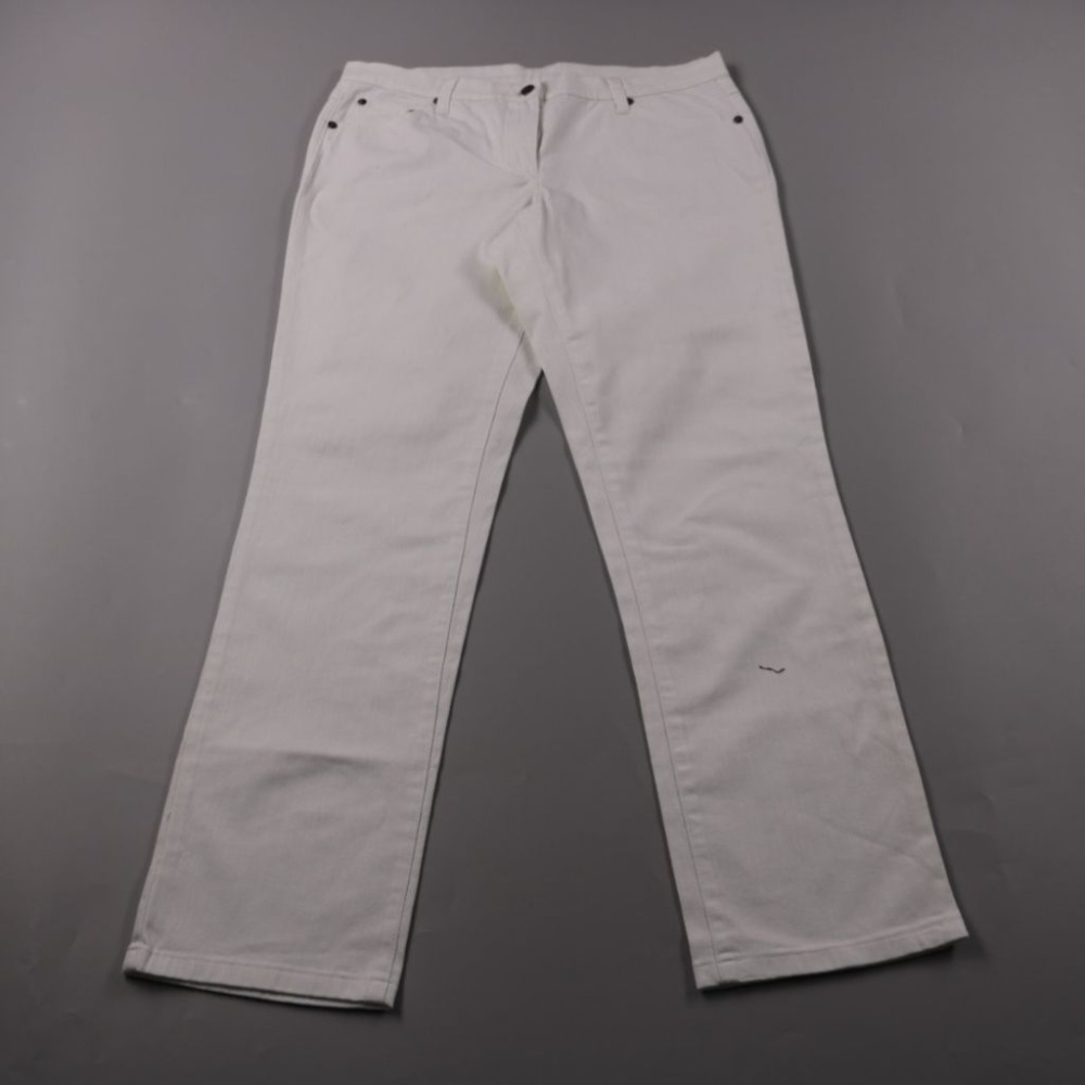 Женские белые джинсы Bpc (bonprix collection) из плотного хлопка с добавлением эластана. Прямой крой подойдёт для повседневных образов и на тёплый сезон. Материал немного тянется, поэтому в них комфортно сидеть и двигаться.