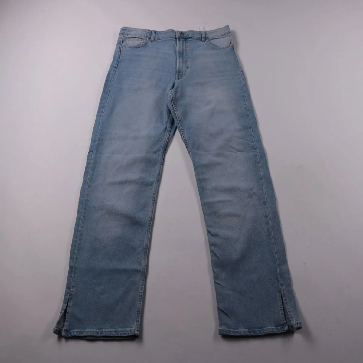 Женские джинсы Bershka из светлого денима с высокой посадкой и слегка расклешёнными штанинами. Подойдут для повседневных образов и прогулок в любое время года. Ткань с добавлением эластана немного тянется и комфортно садится по фигуре.